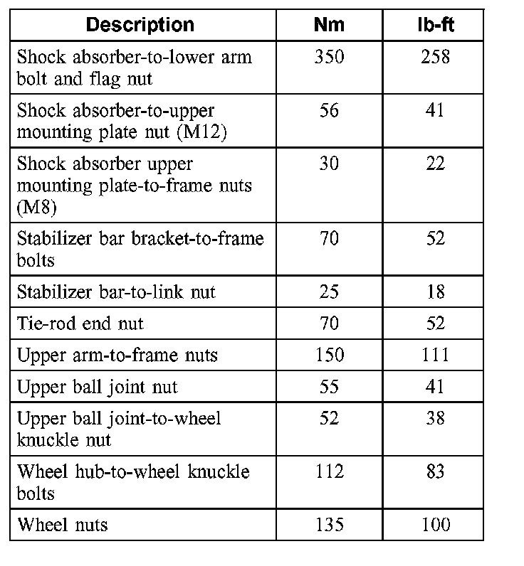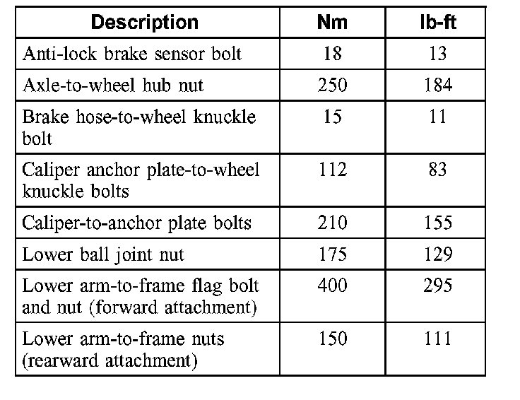 Front / Torque Specifications
