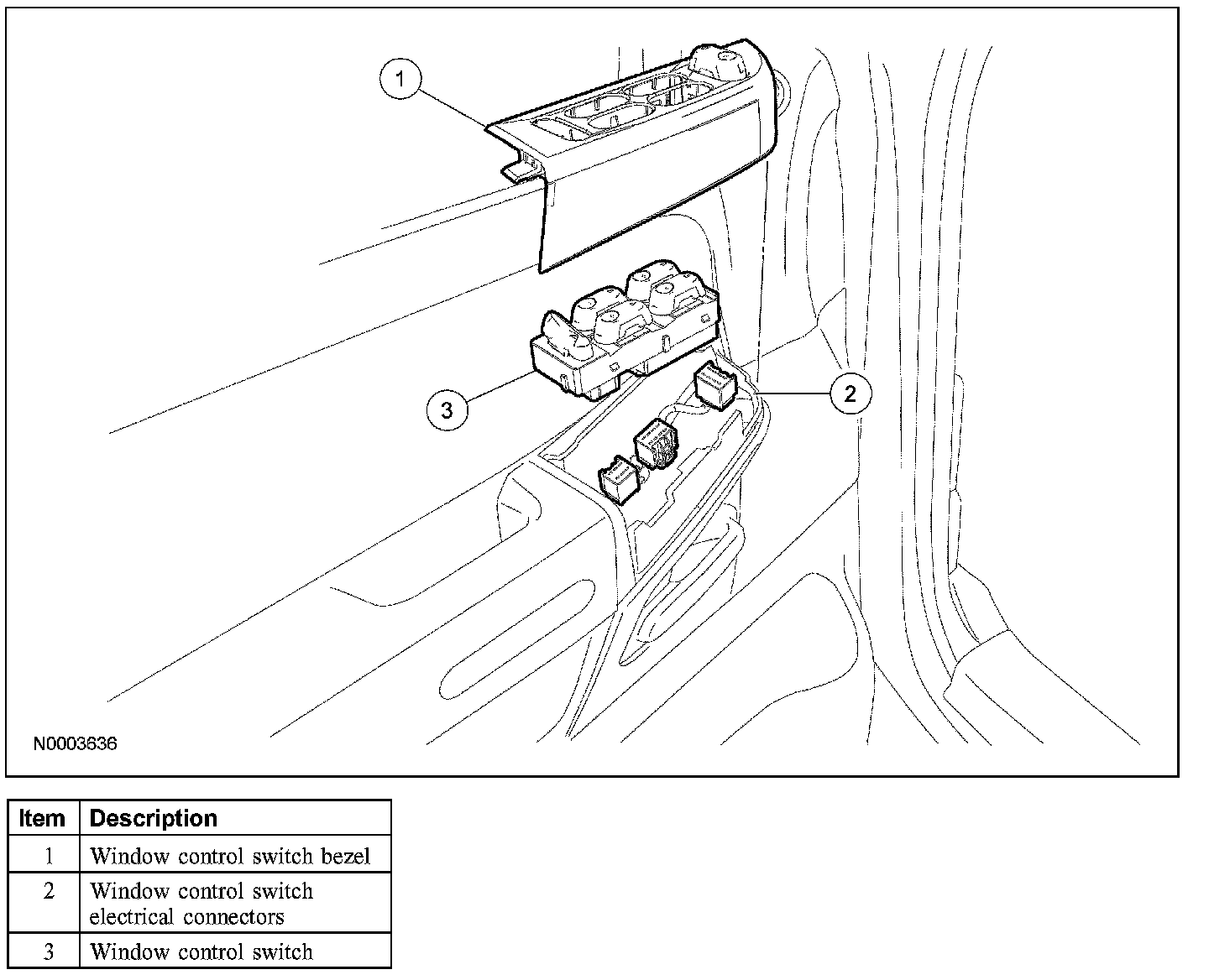 3. Disconnect the window control switch electrical connectors from the window control switch.