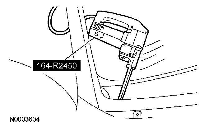 3. Use the wool applicator to apply Urethane Metal Primer Essex U-413 meeting Ford specification WSB-M2G234-C to any exposed metal on the pinch weld. Allow 6 to 10 minutes to dry.