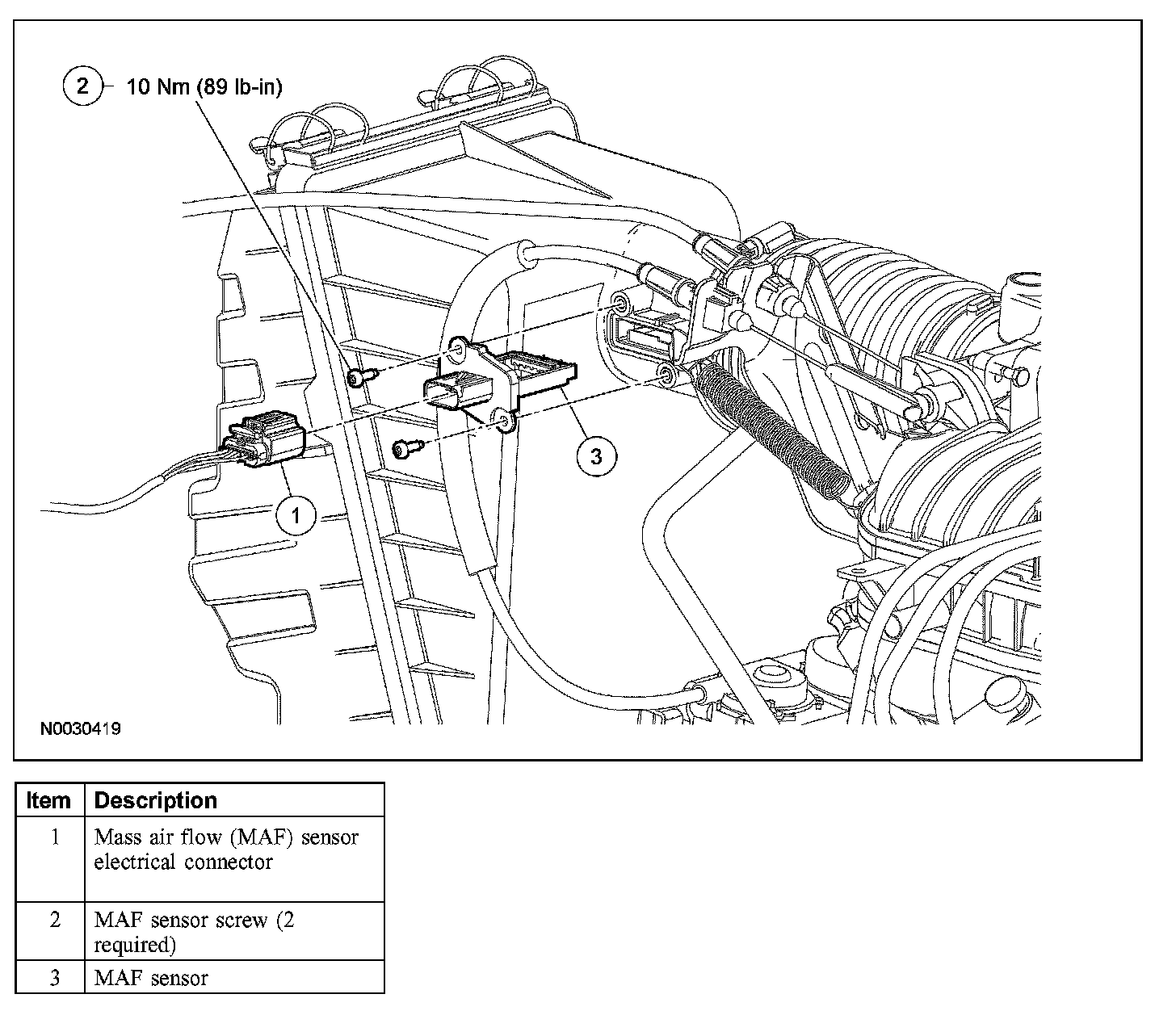 2. Disconnect the mass air flow (MAF) sensor electrical connector.
