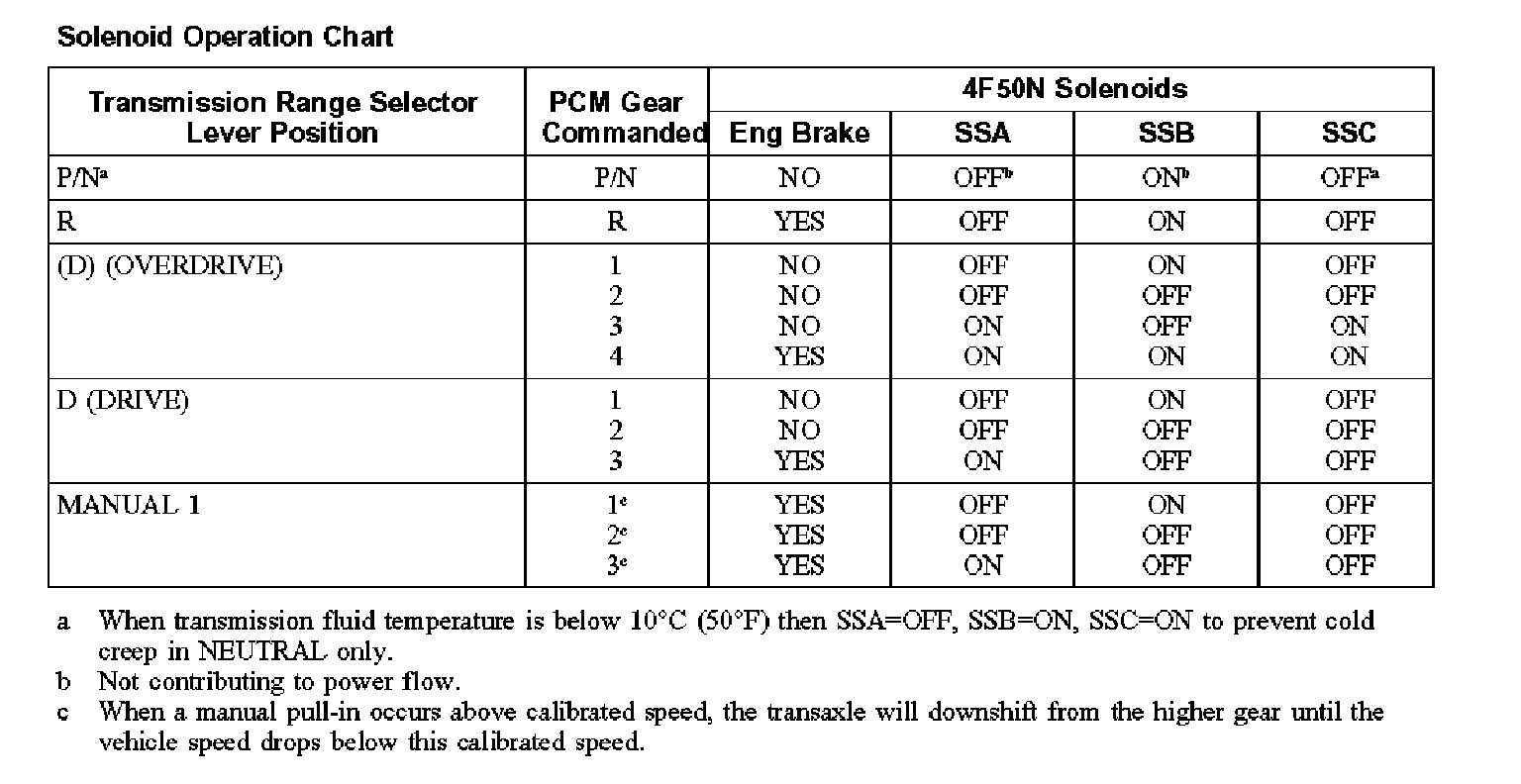Solenoid Operation Chart: