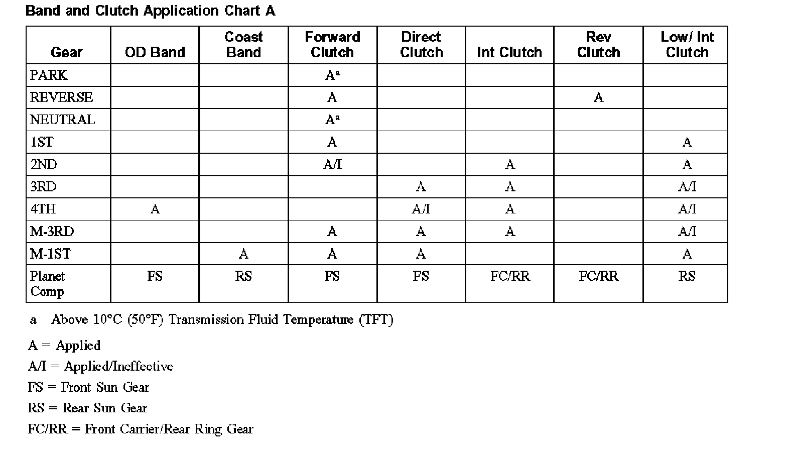 Band and Clutch Application Chart A:
