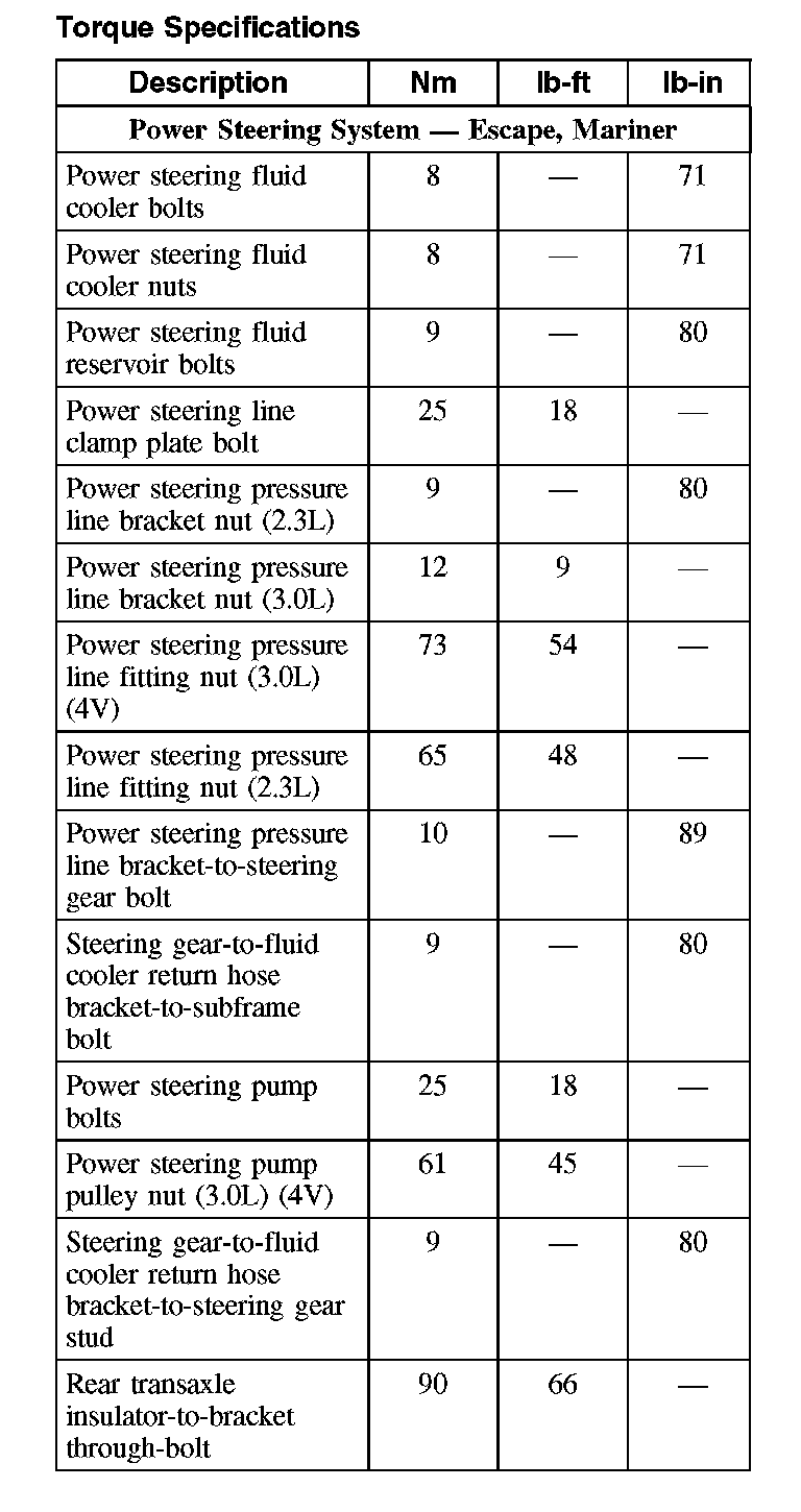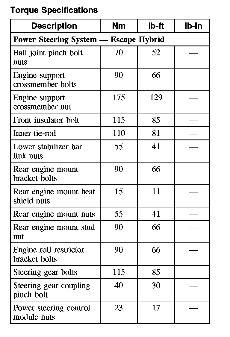 Torque Specifications: