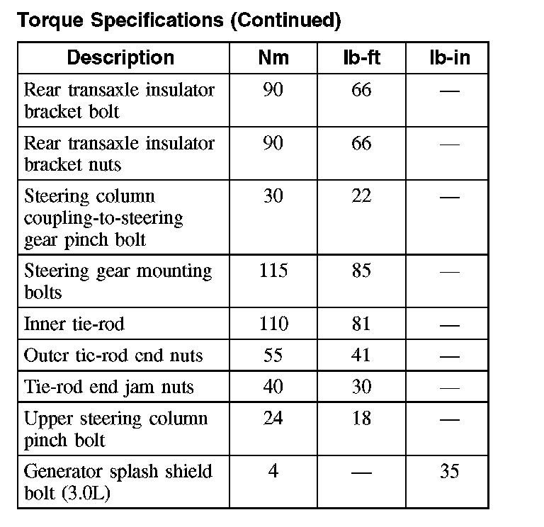 Torque Specifications (Continued):