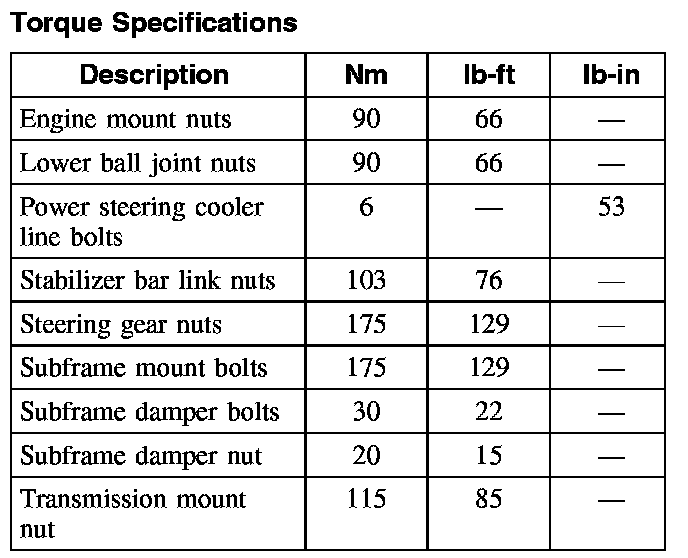 Subframe: Specifications