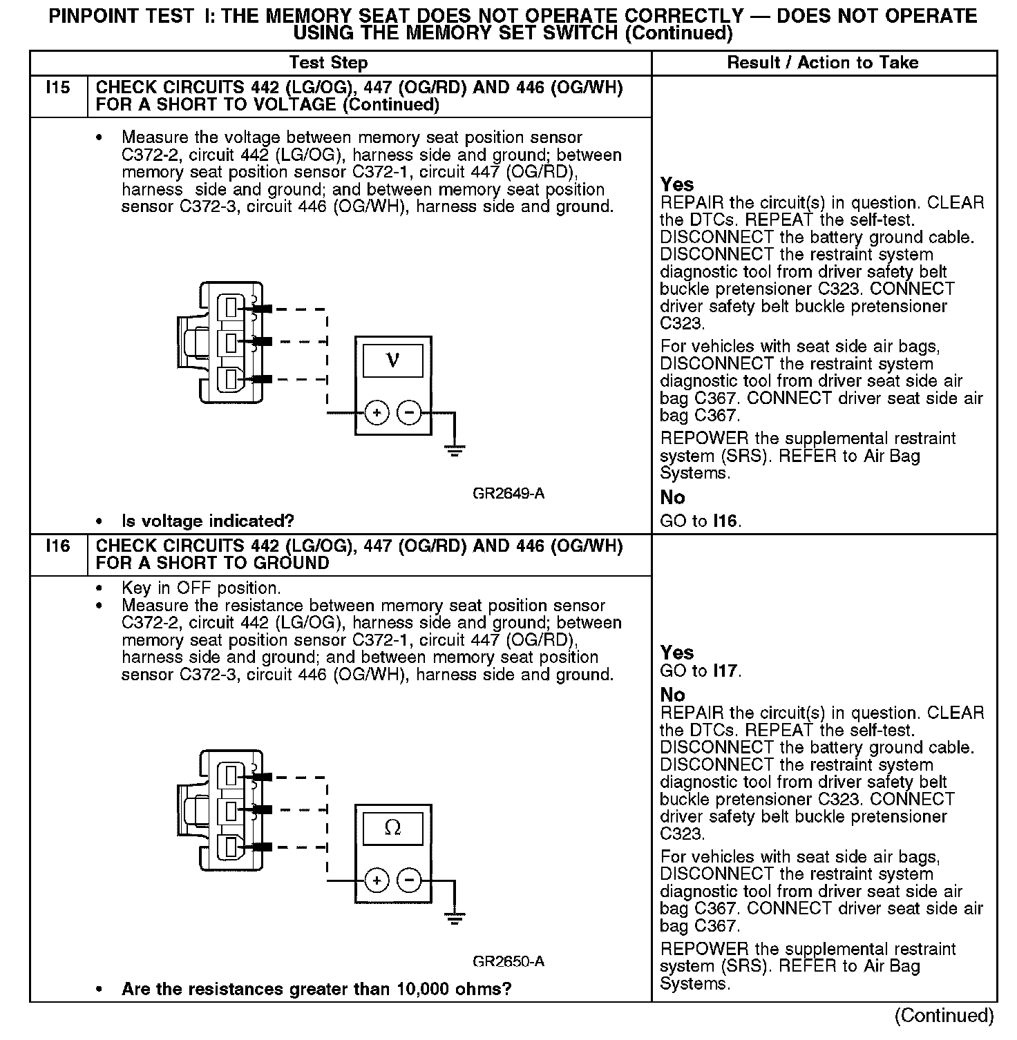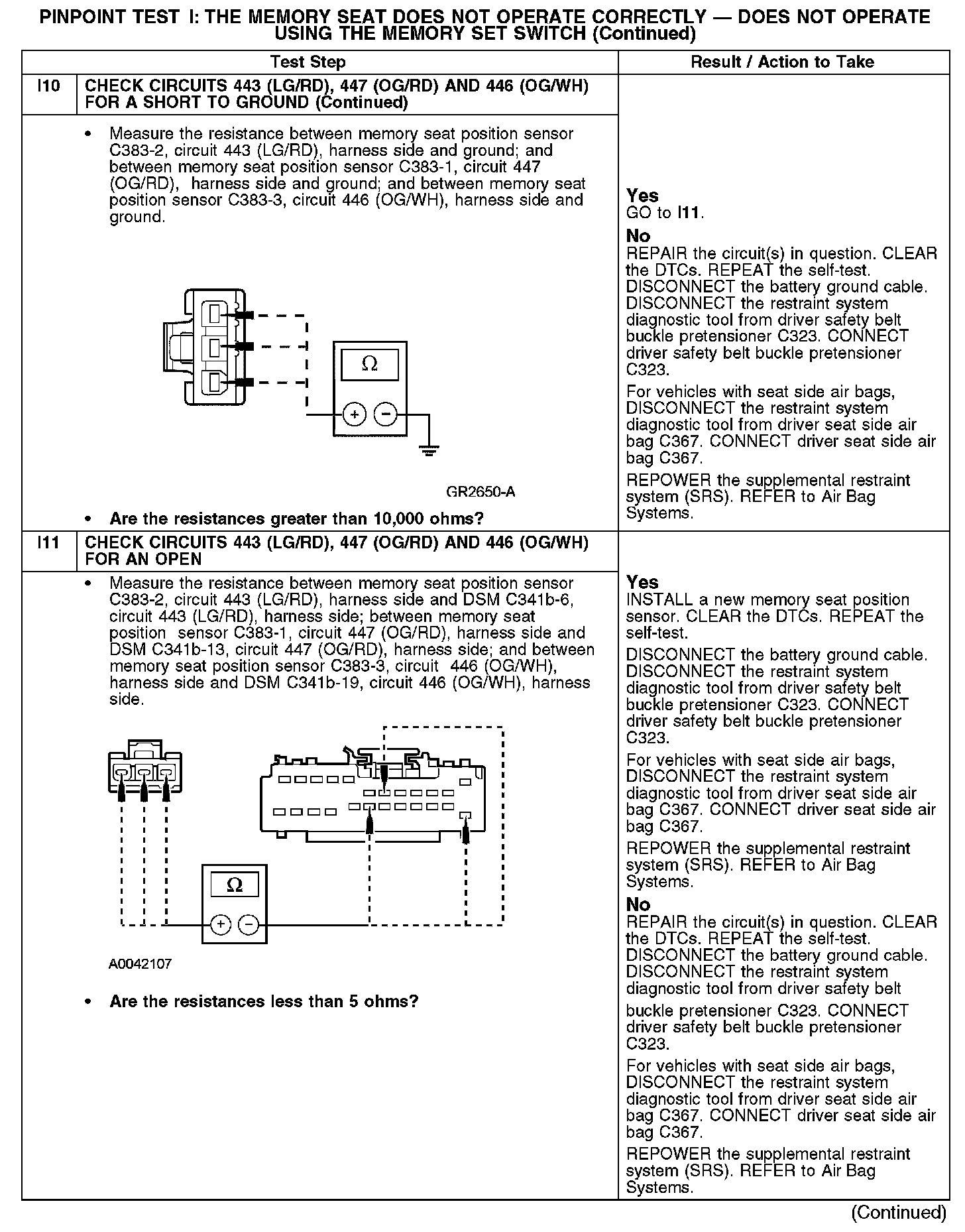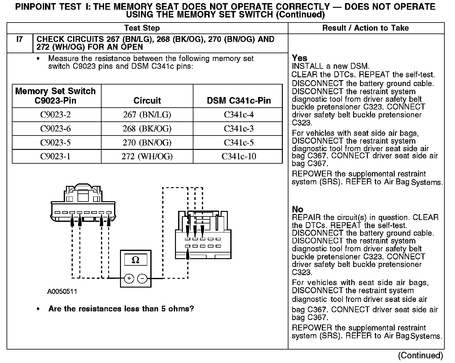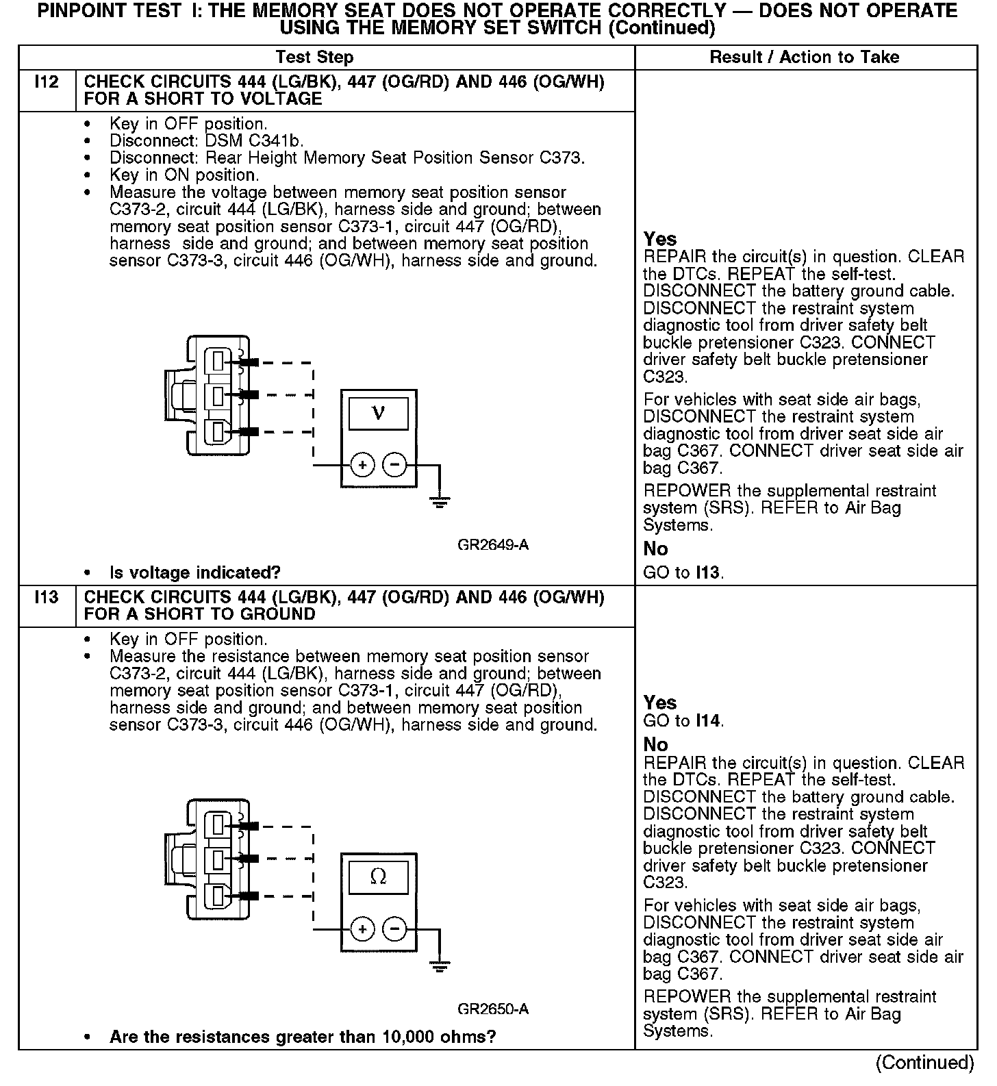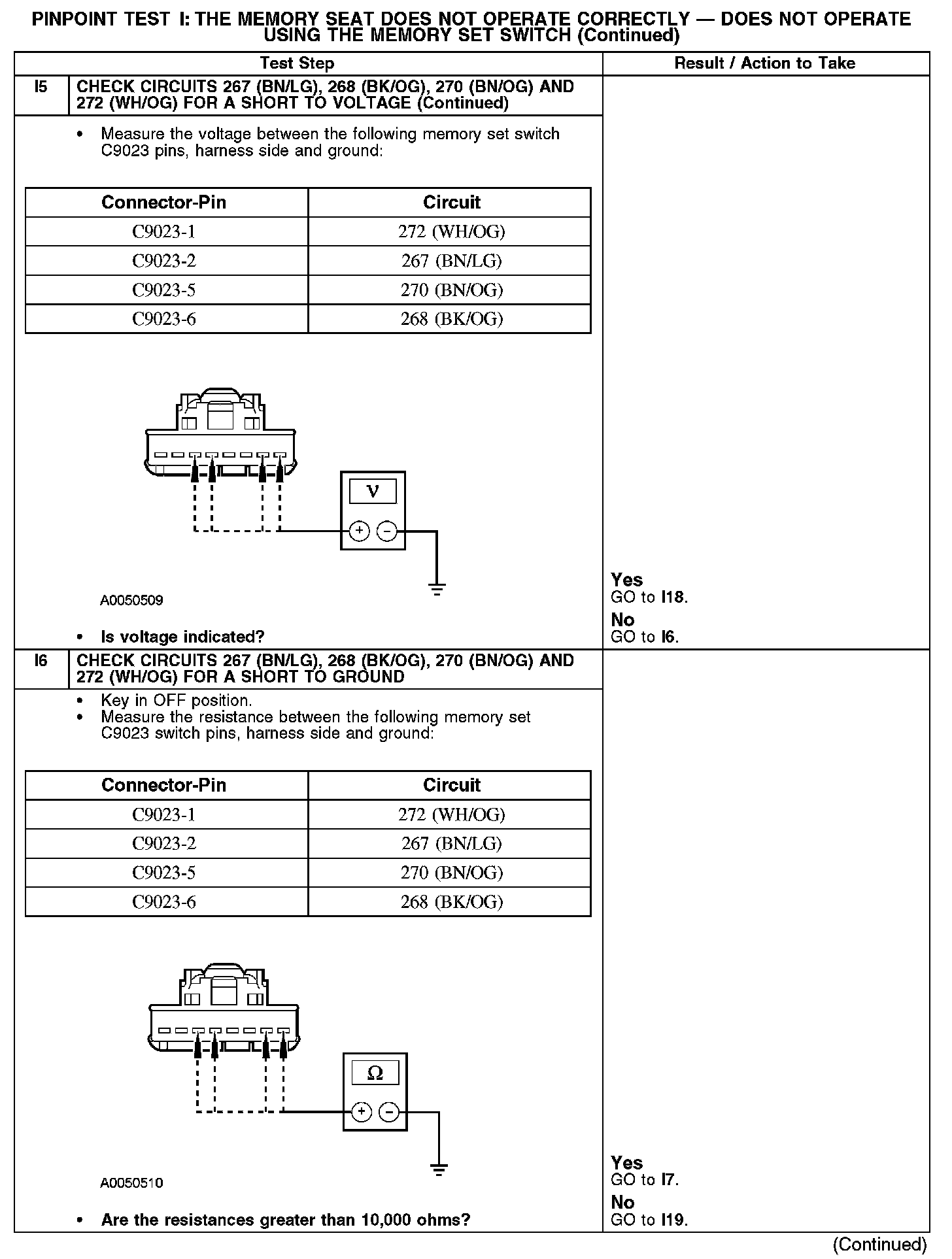 PINPOINT TEST I: THE MEMORY SEAT DOES NOT OPERATE CORRECTLY - DOES NOT OPERATE USING THE MEMORY SET SWITCHI1-I3: