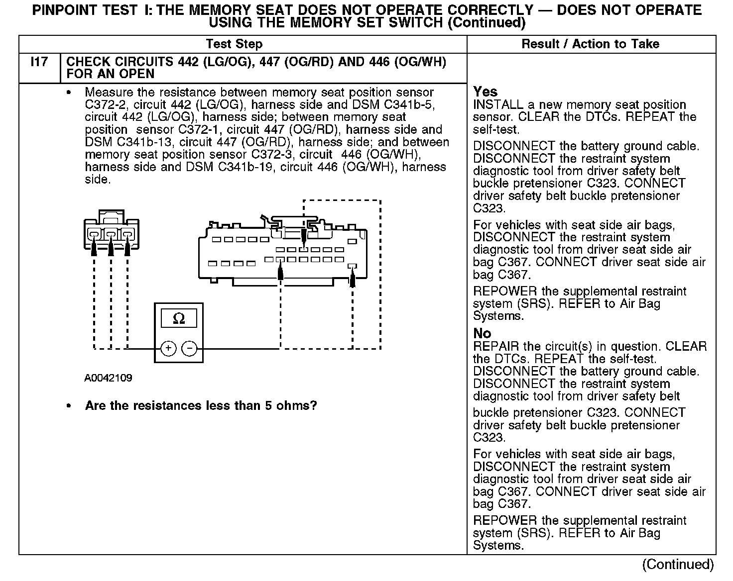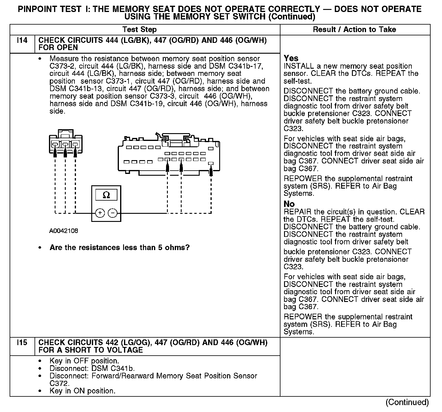 Test I: The Memory Seat Does Not Operate Correctly - Does Not Operate Using The Memory Set Switch