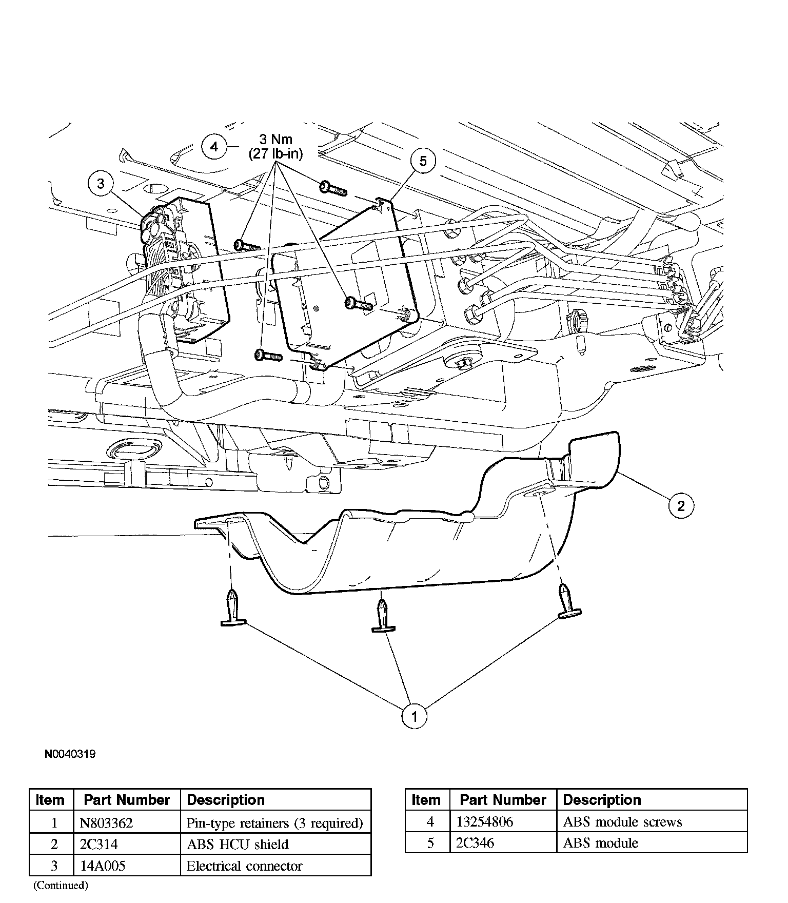 NOTE: When installing a new ABS module, it must be configured (using vehicle as-built data) and calibrated. Follow the scan tool directions for the calibration procedures. For module configuration, refer to Information Bus (Module Configuration).