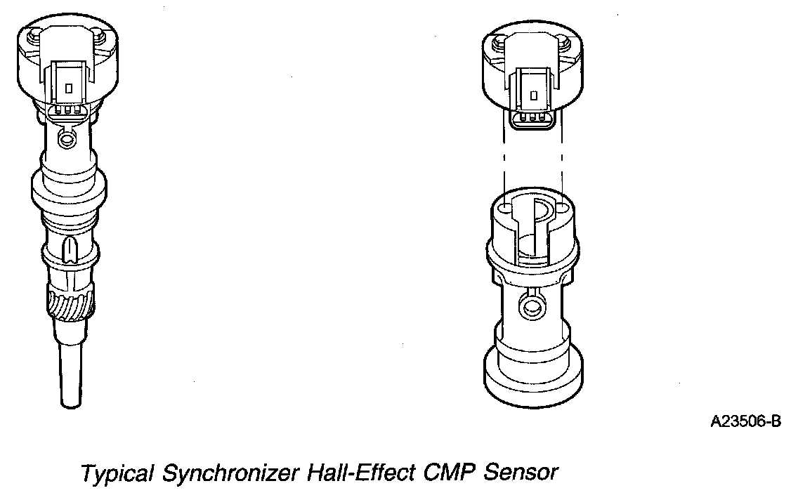 There are 2 types of CMP sensors: the 3-pin connector Hall-effect type sensor and the 2-pin connector variable reluctance type sensor.