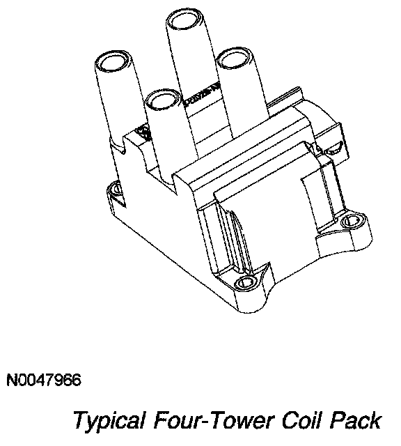 When the coil is fired by the PCM, spark is delivered through the matched pair towers to their respective spark plugs. The spark plugs are fired simultaneously and are paired so that as one fires on the compression stroke, the other spark plug fires on the exhaust stroke. The next time the coil is fired, the situation is reversed. The next pair of spark plugs fire according to the engine firing order.