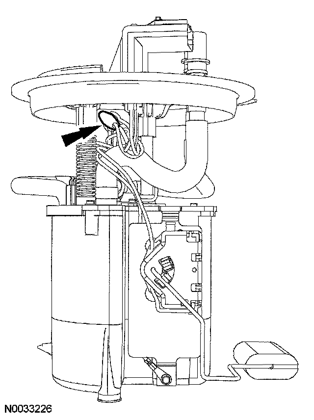 6. Wrap the sending unit wire around the fuel pump module wire harness to make sure the wire will not interfere with the movement of the fuel gauge sending unit float arm.