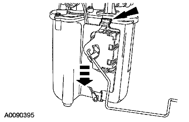 1. Route the fuel gauge sending unit wire through the center of the fuel pump module.