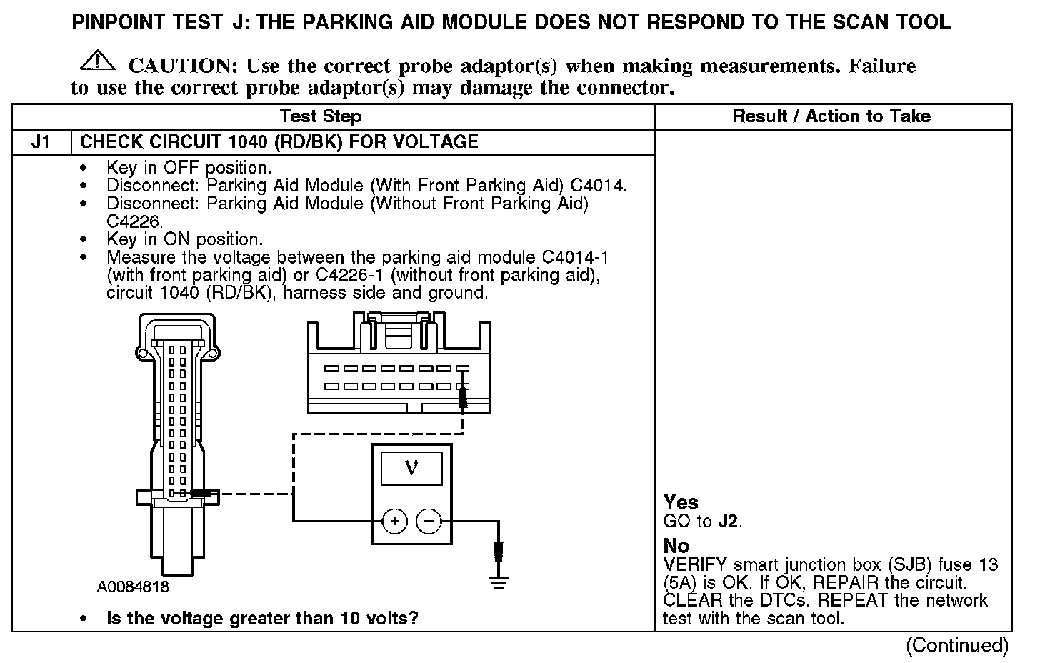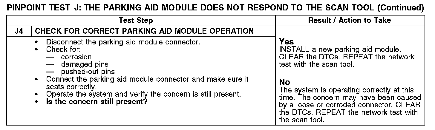 Test J: The Parking Aid Module Does Not Respond To the Scan Tool