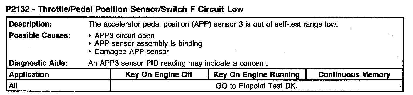 P2132 - Throttle/Pedal Position Sensor/Switch F Circuit Low:
