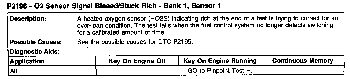 P2196 - O2 Sensor Signal Biased/Stuck Rich - Bank 1, Sensor 1: