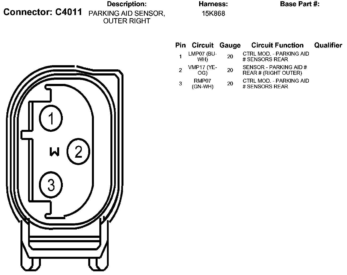 Parking Aid Sensor, Outer Right
