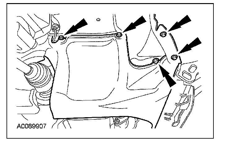 2. Remove the 5 bolts, the pin-type retainer (not shown) and the RH splash shield.