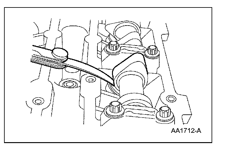 NOTE: Before removing the camshafts, measure the clearance of each valve at base circle, with the lobe pointed away from the tappet. Failure to measure all clearances prior to removing the camshafts will necessitate repeated removal and installation and wasted labor time.