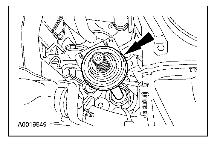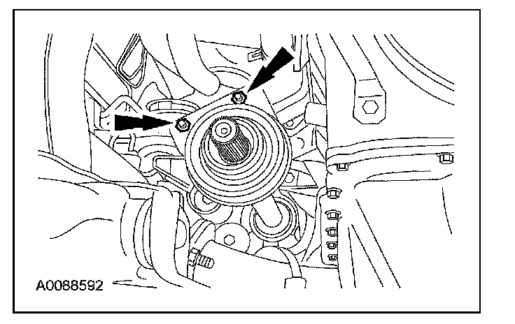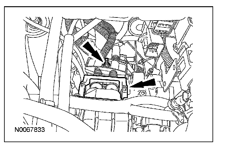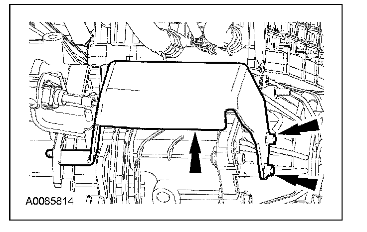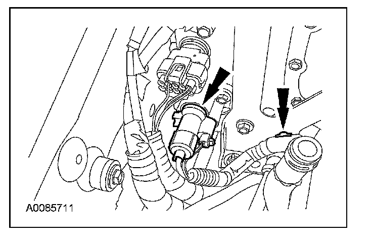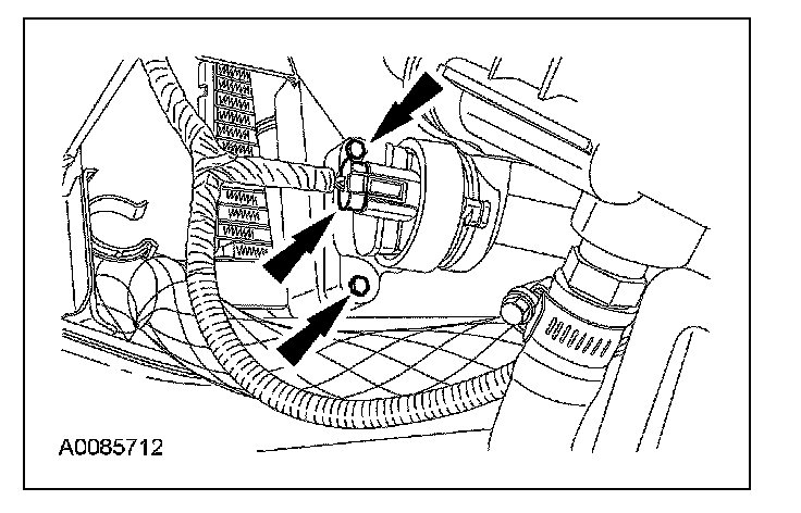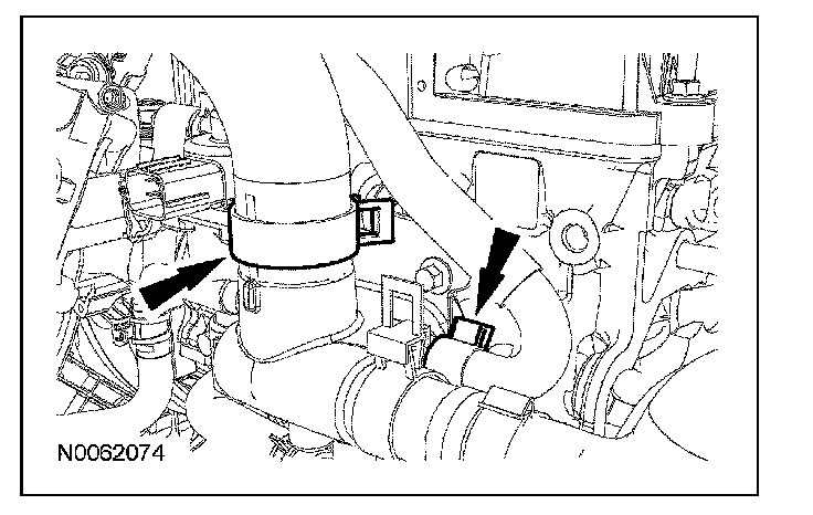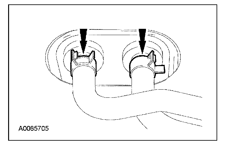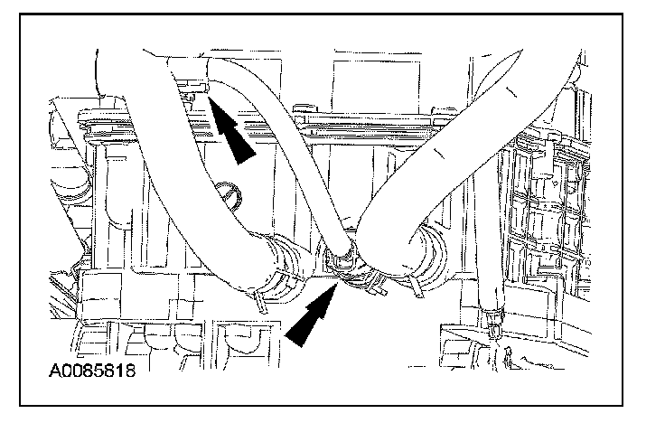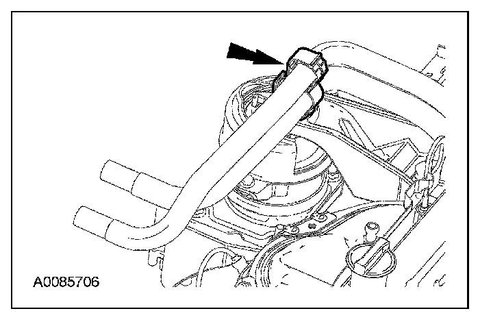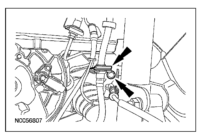 45. Attach the heater hose retaining clip to the transaxle mount stud.