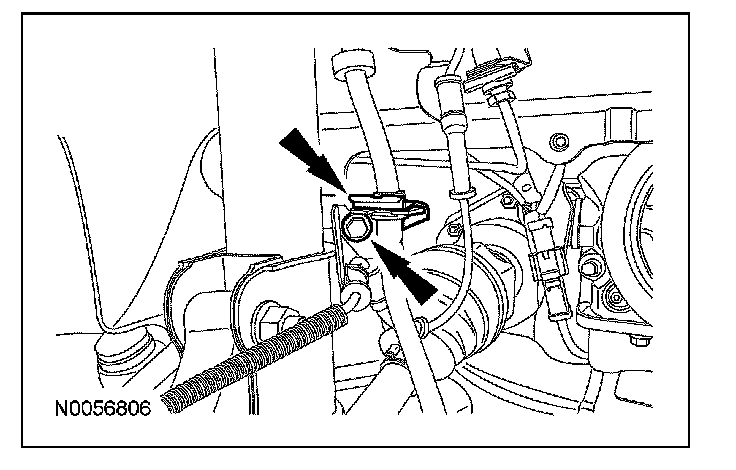 56. Install the RH brake hose retainer and the ABS sensor bolt.