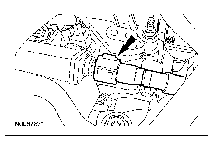27. Connect the transaxle coolant temperature sensor electrical connector and pin-type retainer.