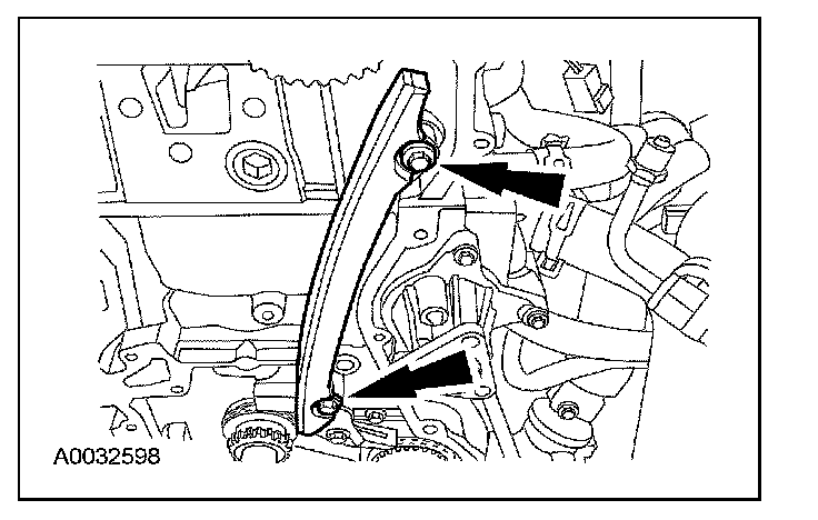 6. Remove the bolts and the LH timing chain guide.