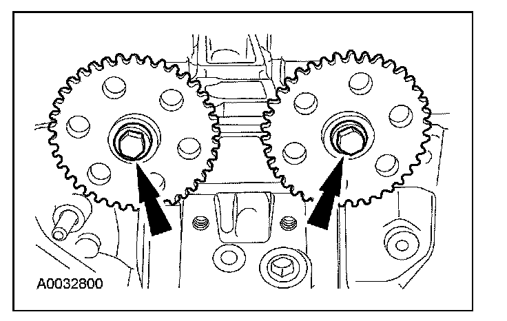 1. Install the camshaft sprockets and the bolts. Do not tighten the bolts at this time.