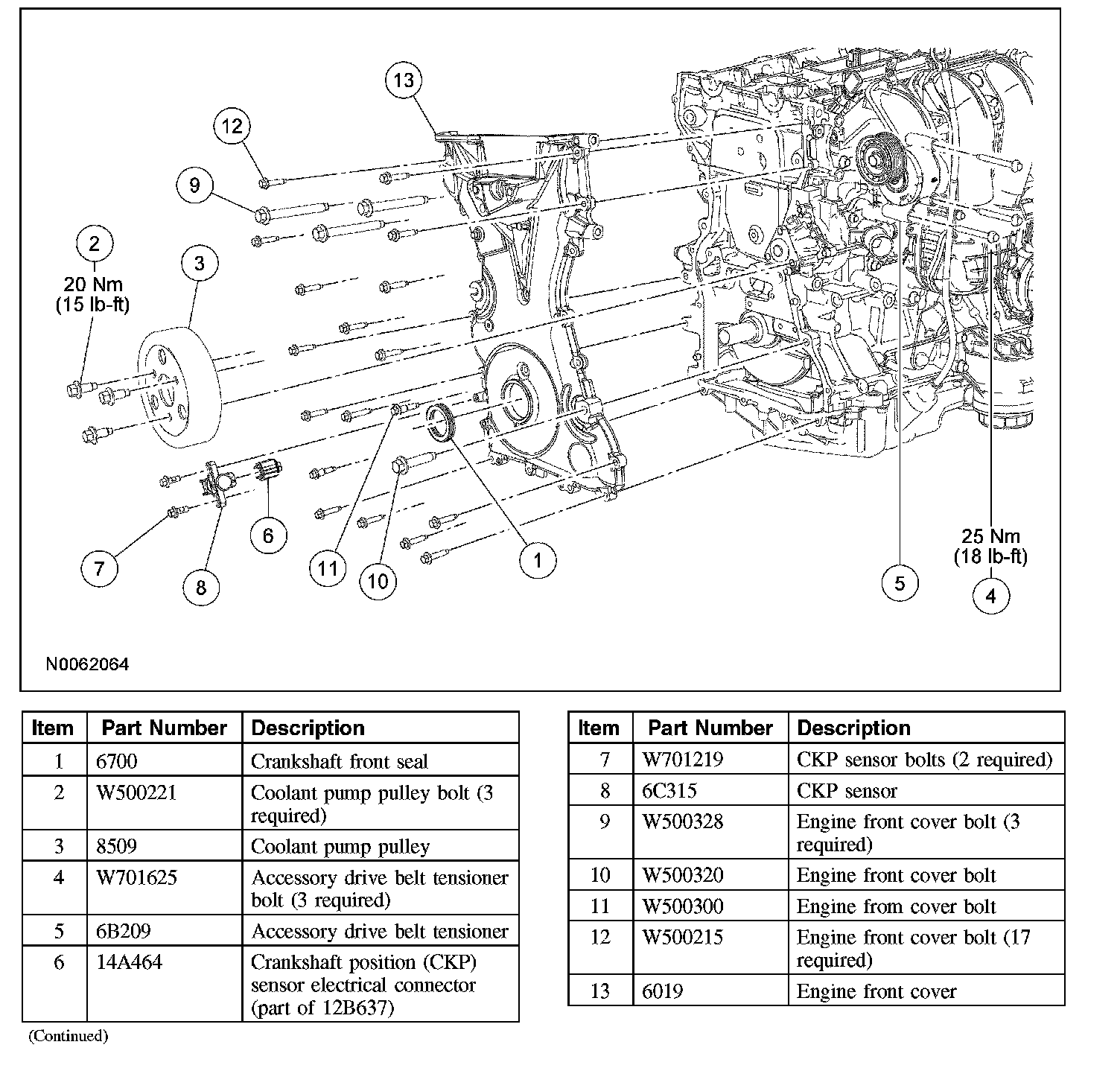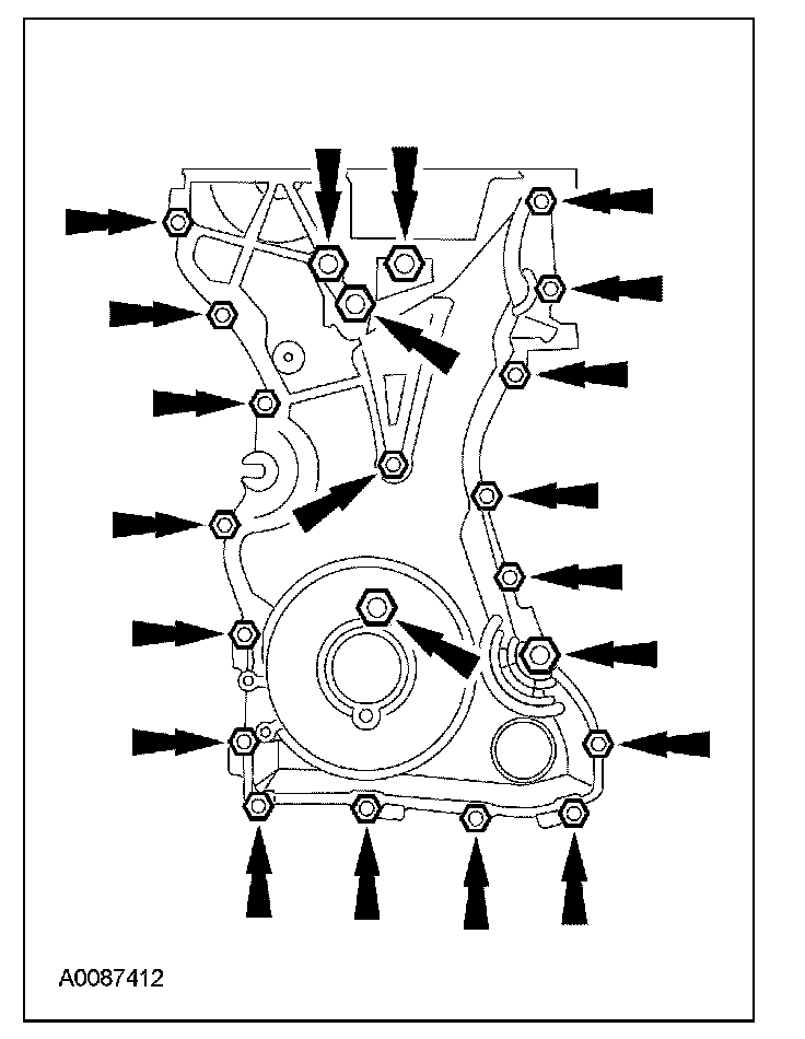 3. Install the engine front cover. Tighten the bolts in the sequence shown, to the following specifications: