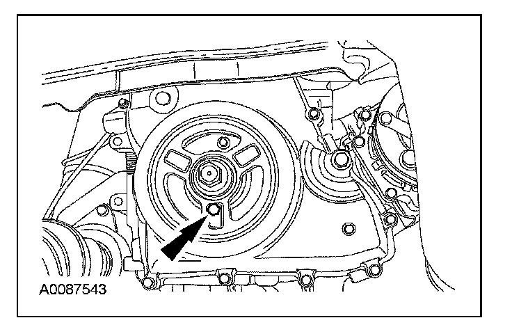 9. CAUTION: Only hand-tighten the bolt or damage to the front cover can occur.