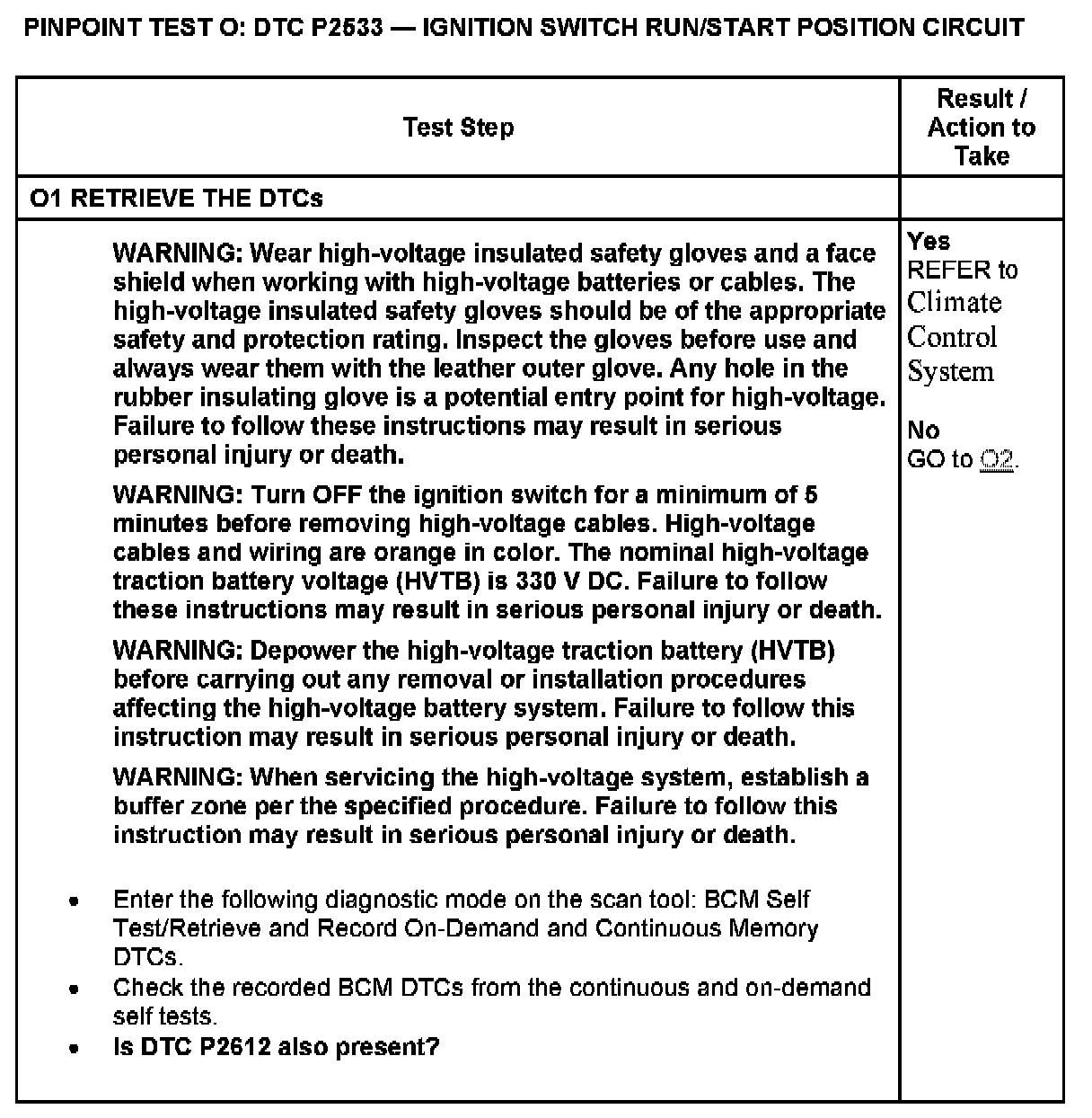 Test O: DTC P2533 - Ignition Switch Run/Start Position Circuit