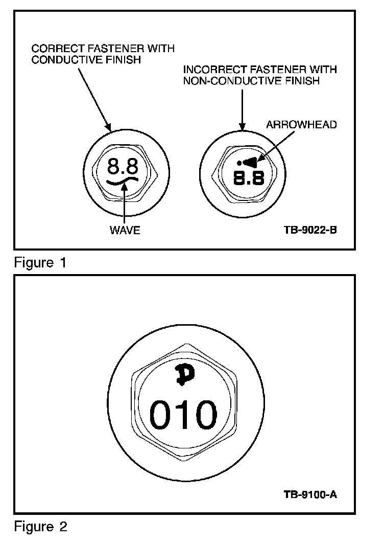 2. If fastener displays an arrowhead trademark located above the 8.8 property class stamp (Figure 1). Replace with fastener displayed in (Figure 2) and torque fastener to 20 lb-ft (27.5 N.m).