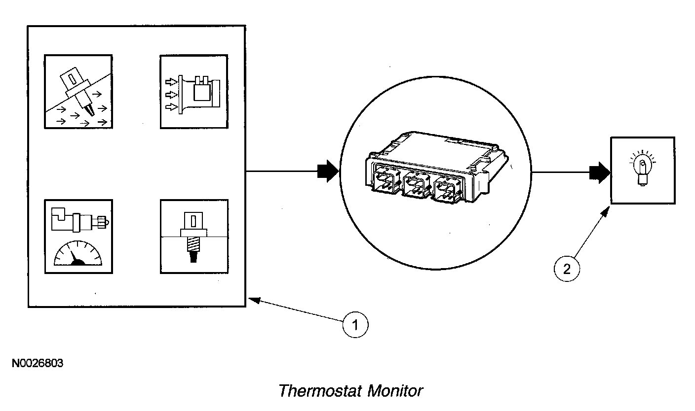 The thermostat monitor is designed to verify proper thermostat operation. This monitor is executed once per drive cycle and has a monitor run duration of 300 - 800 seconds. If a problem occurs, diagnostic trouble code (DTC) P0128 is set and the malfunction indicator lamp (MIL) will be illuminated.