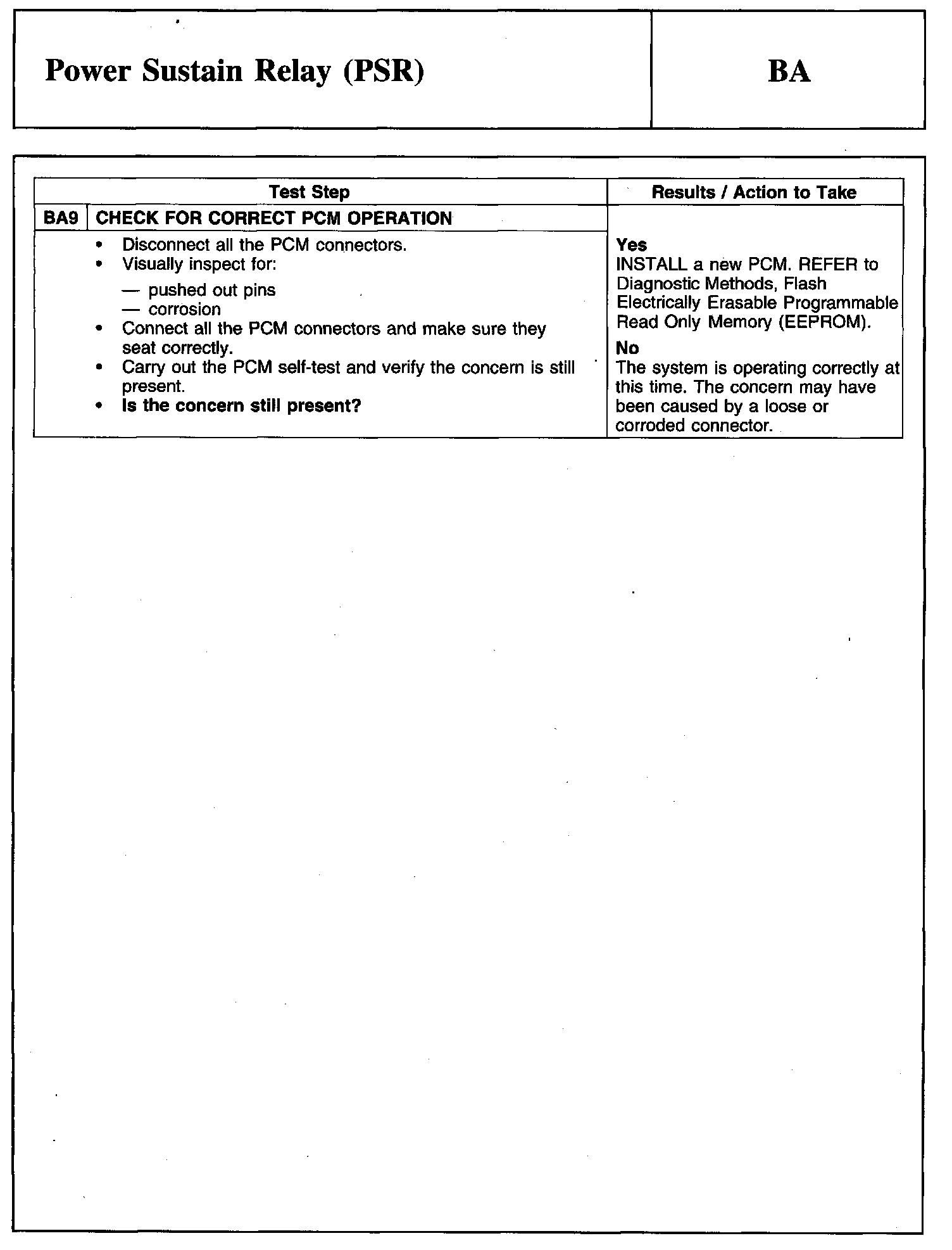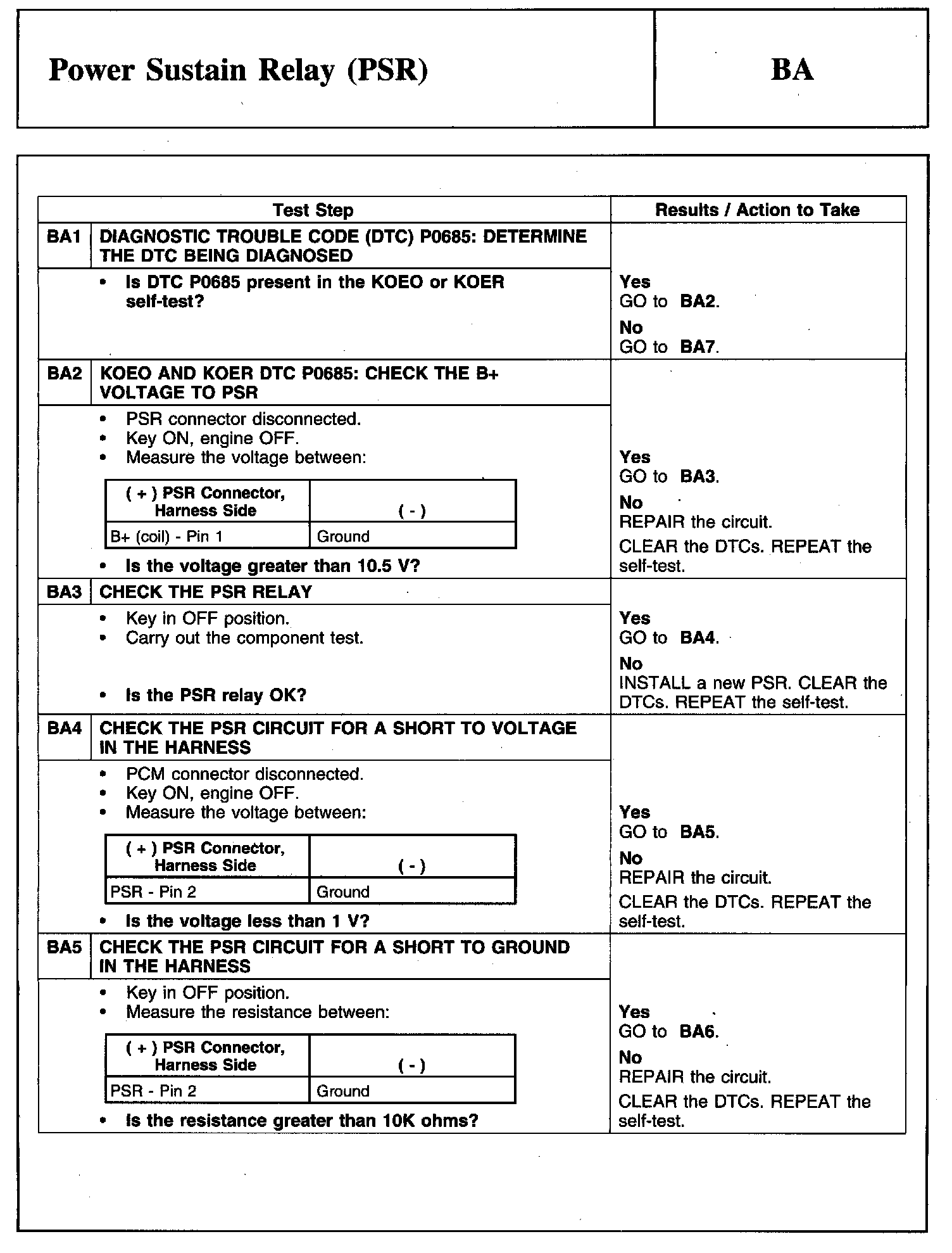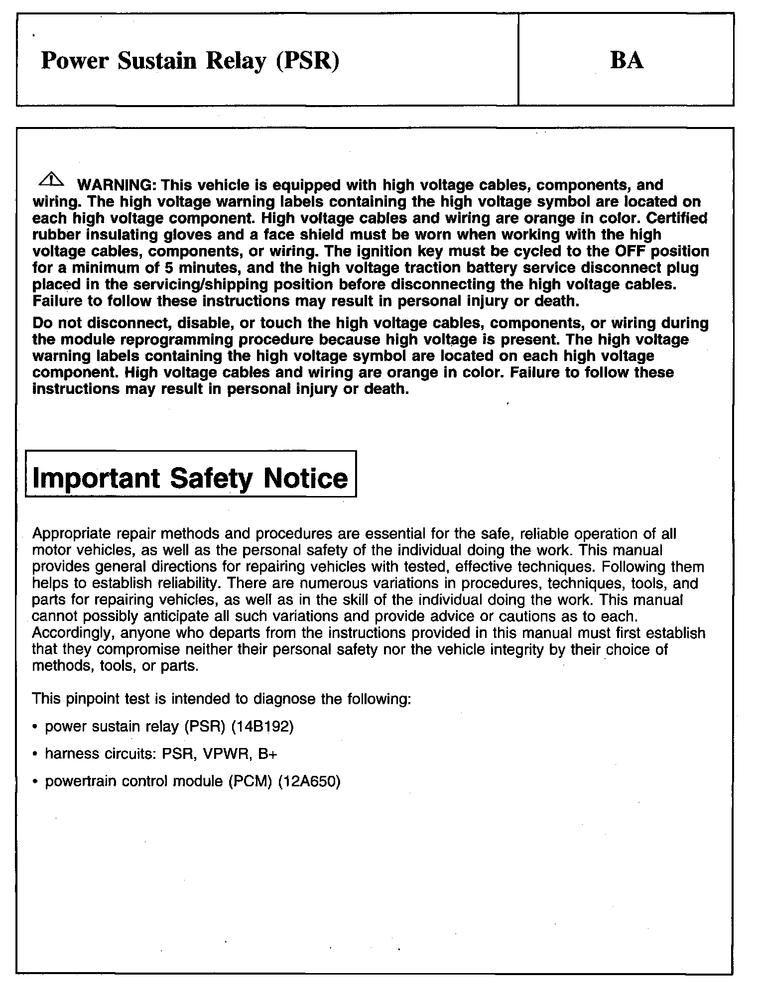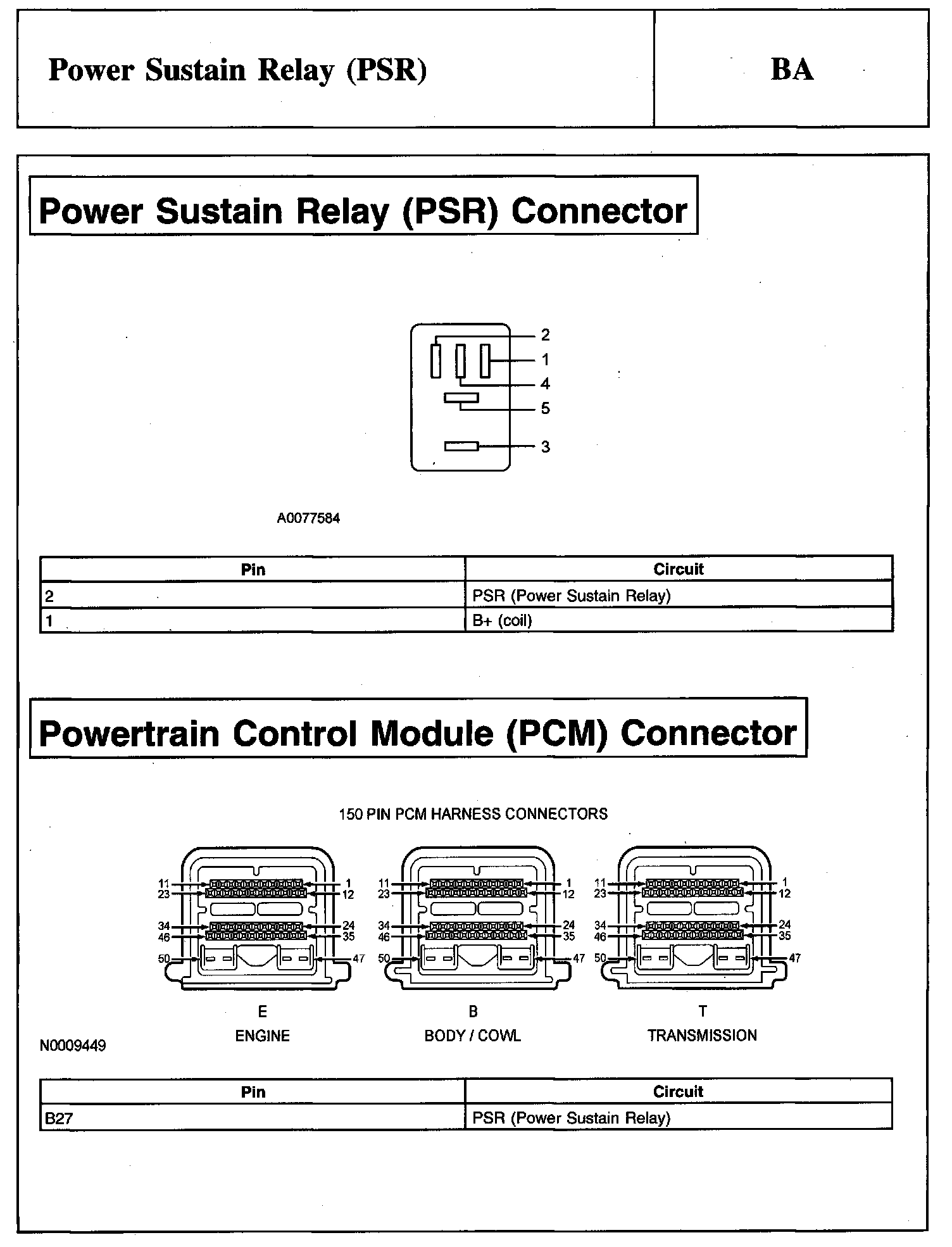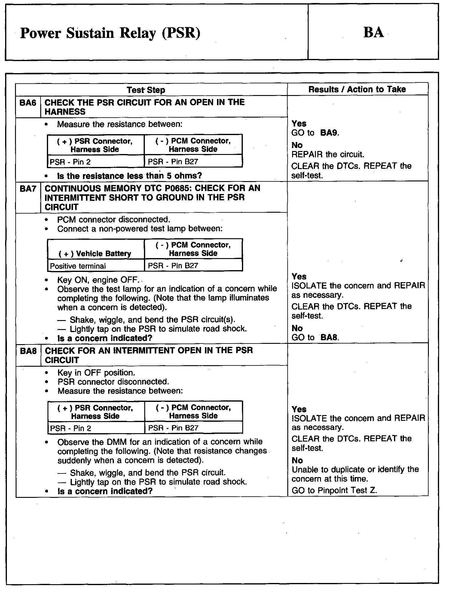 PINPOINT TEST BA: POWER SUSTAIN RELAY (PSR)
