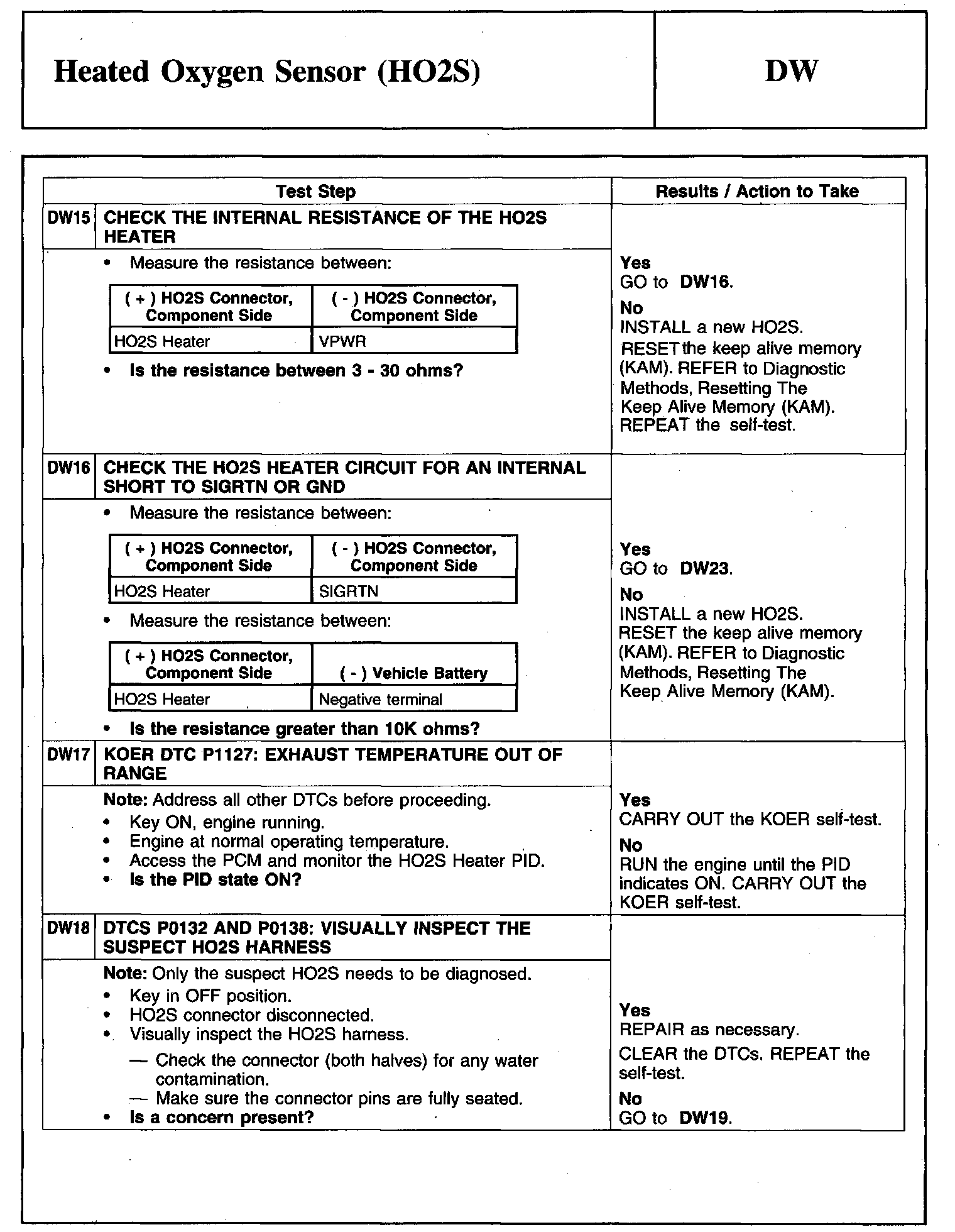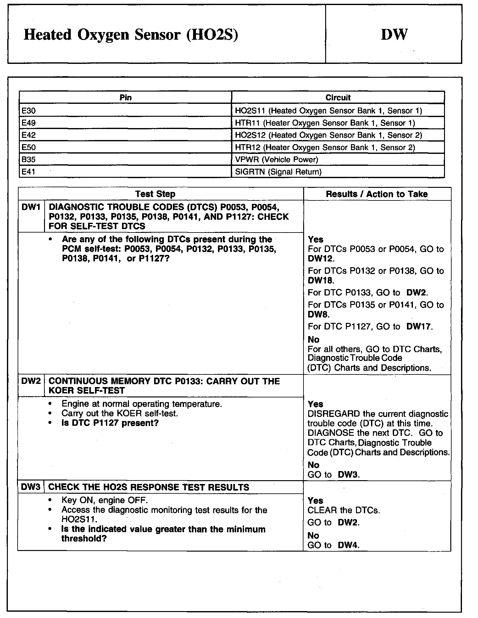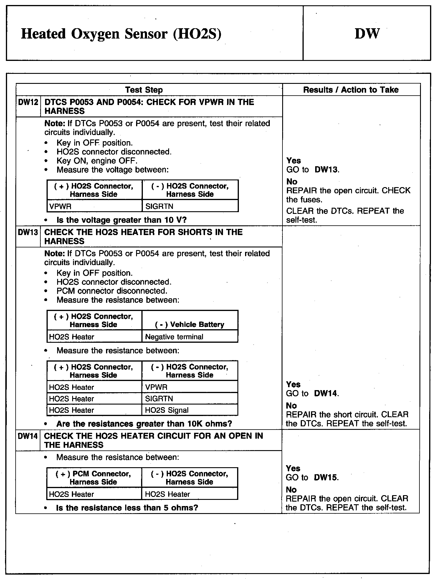 Tests DW: Heated Oxygen Sensor (HO2S)