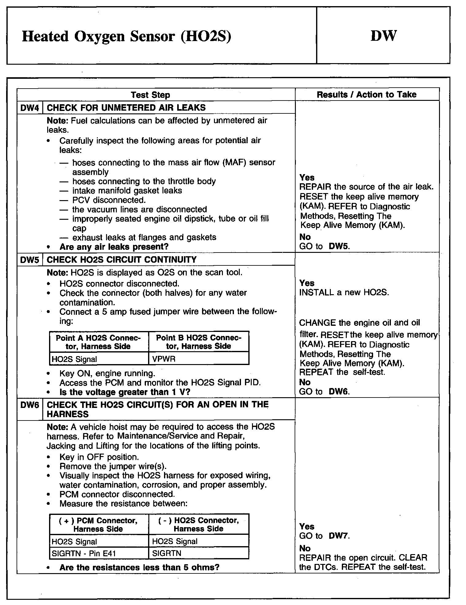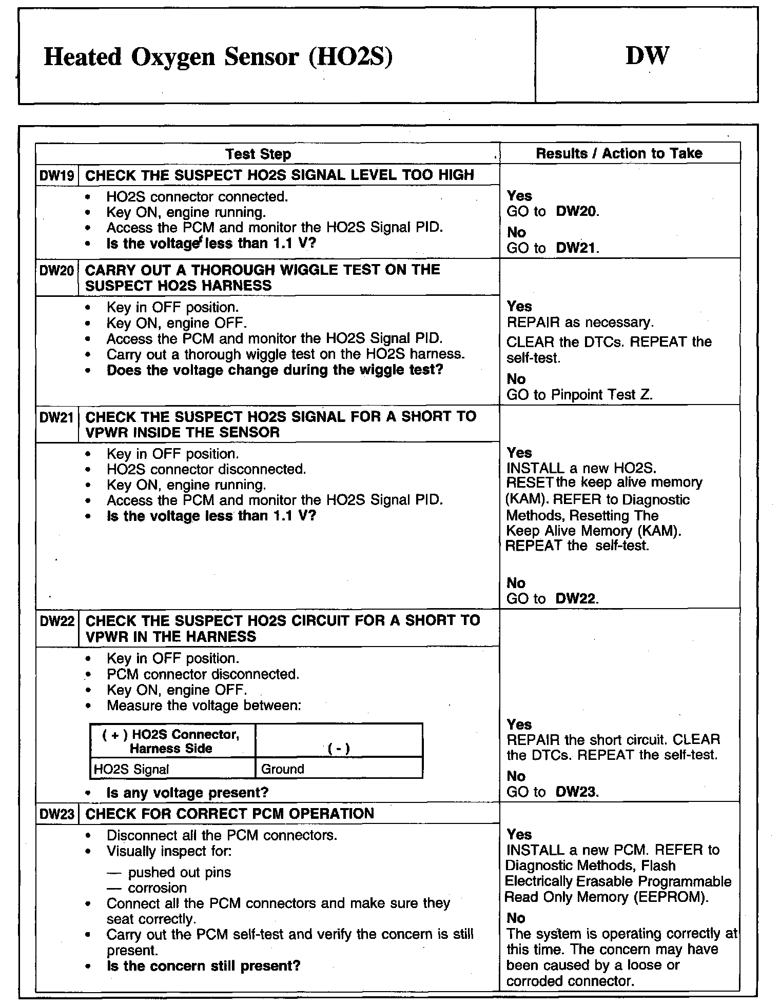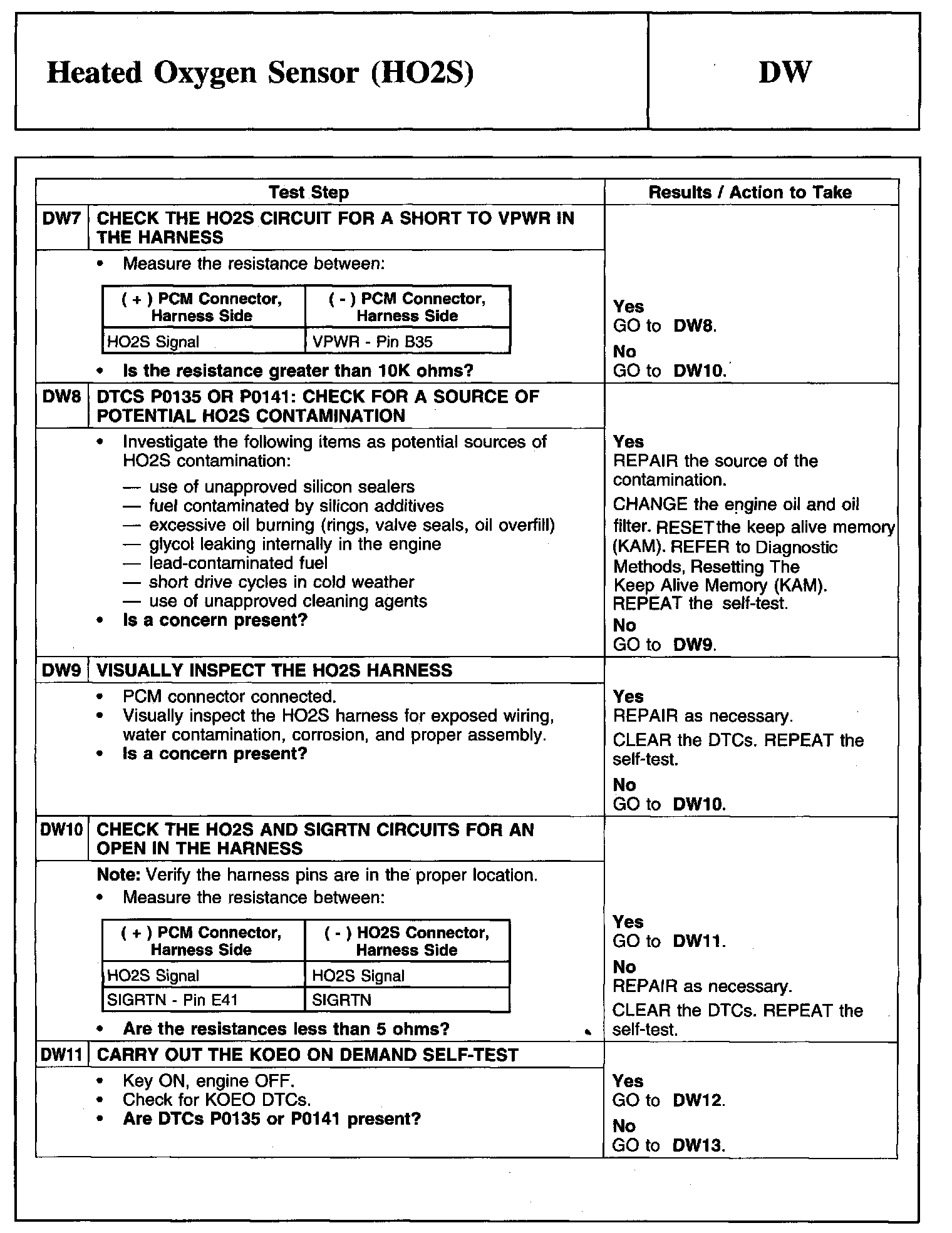 Tests DW: Heated Oxygen Sensor (HO2S)