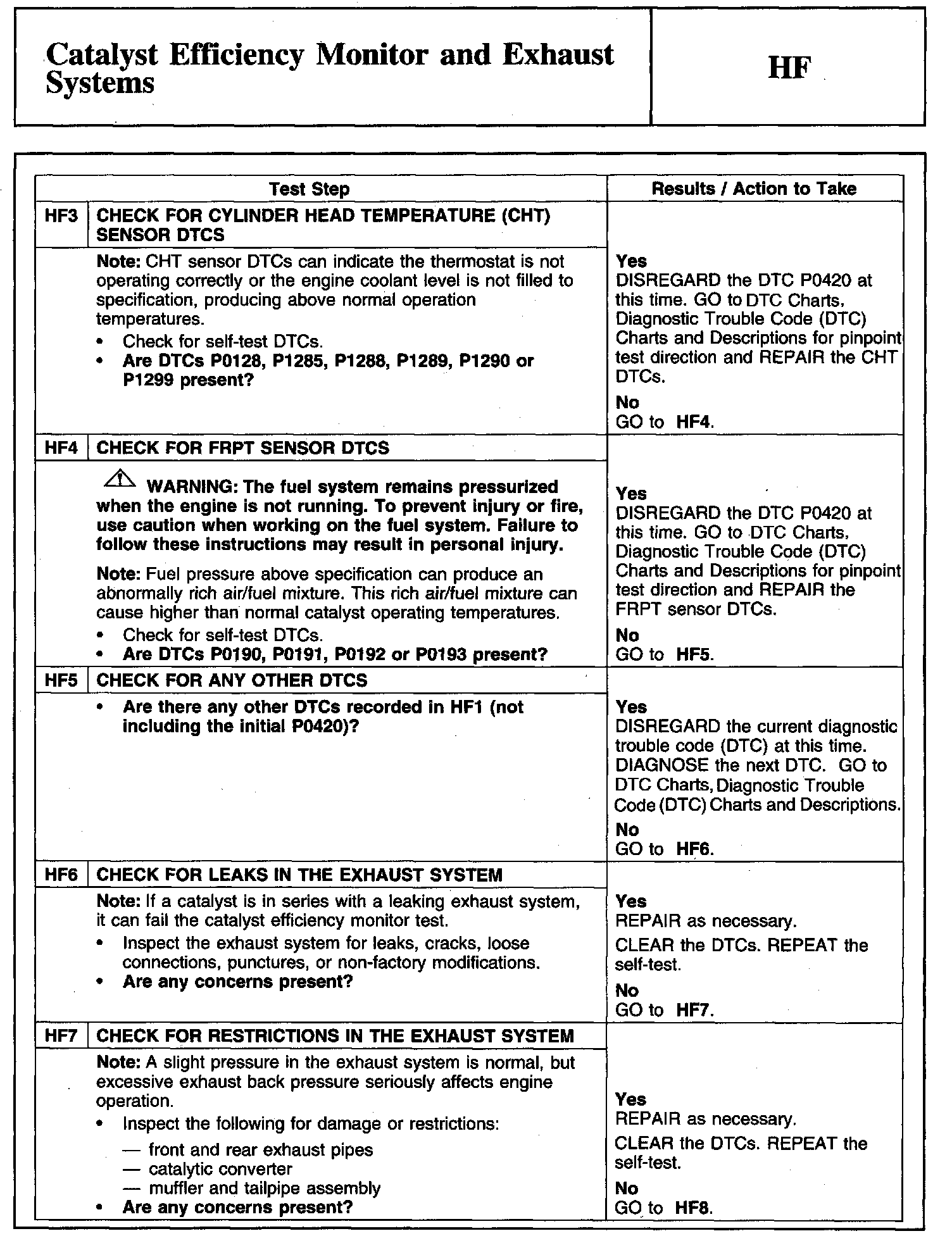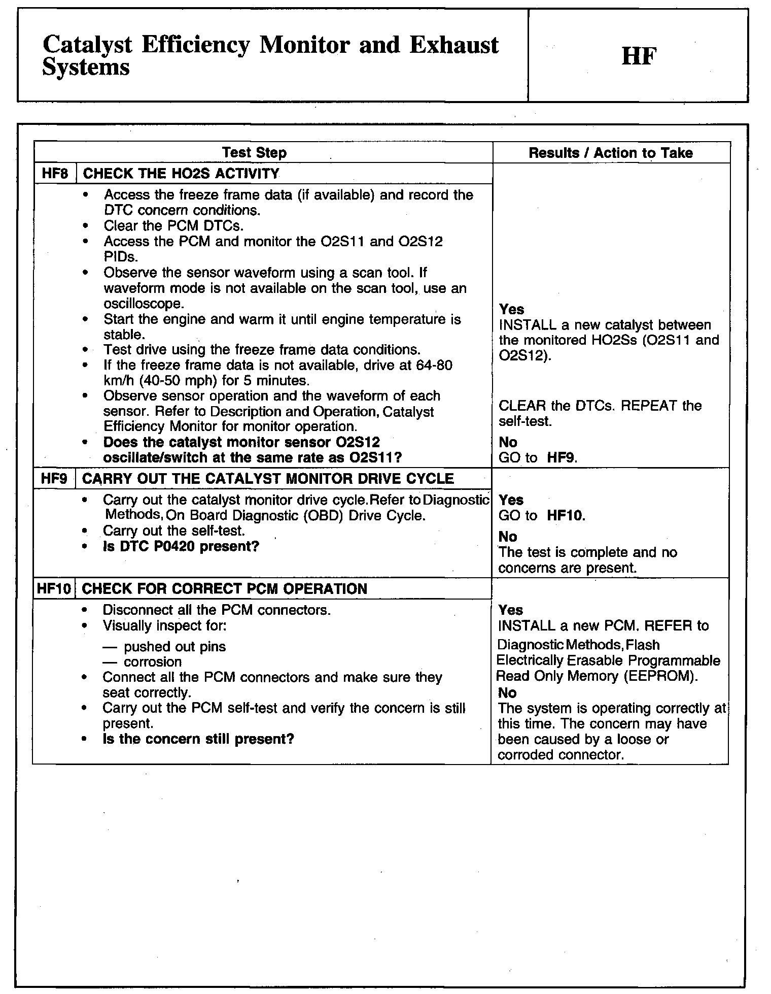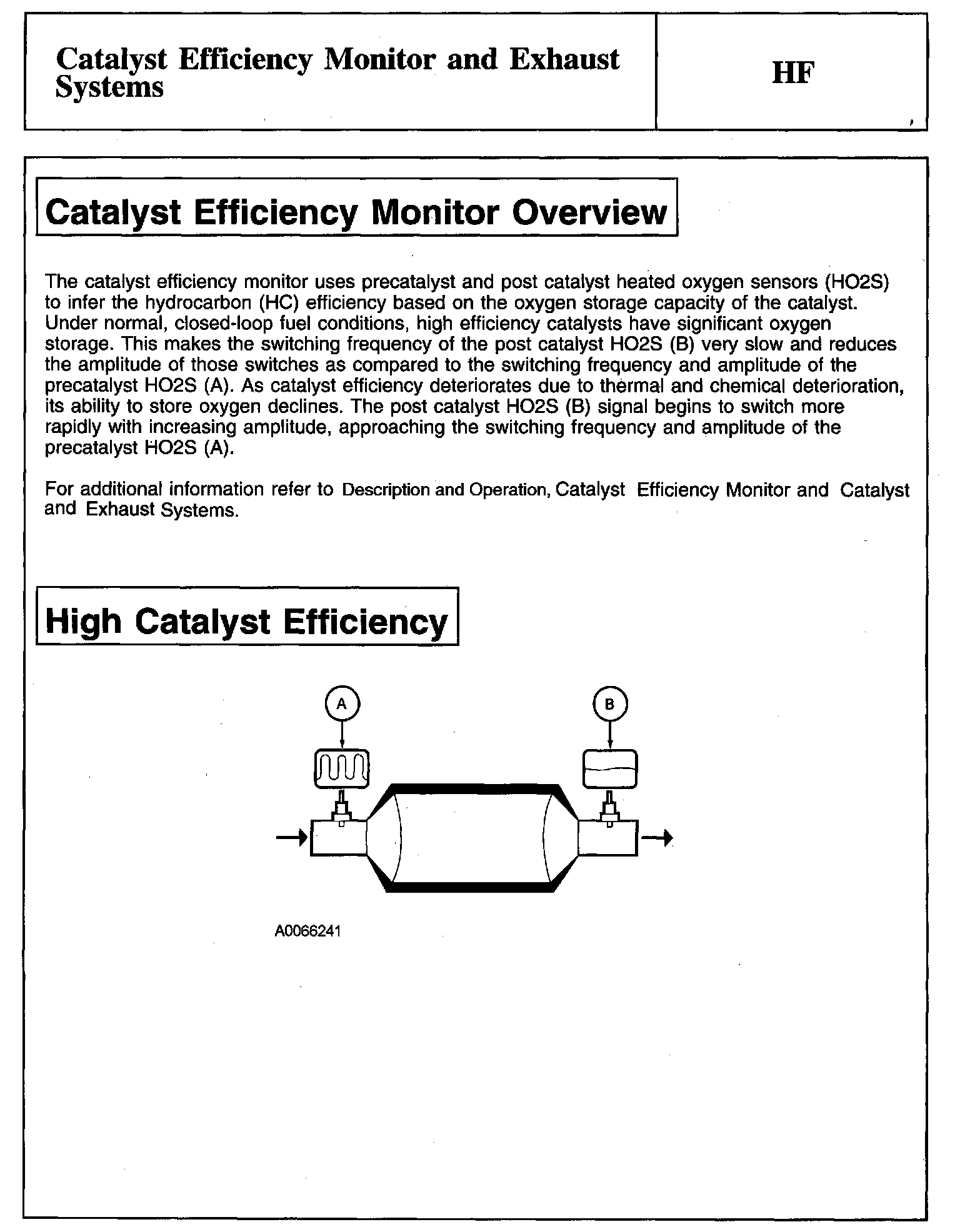 Tests HF: Catalyst Efficiency Monitor and Exhaust Systems