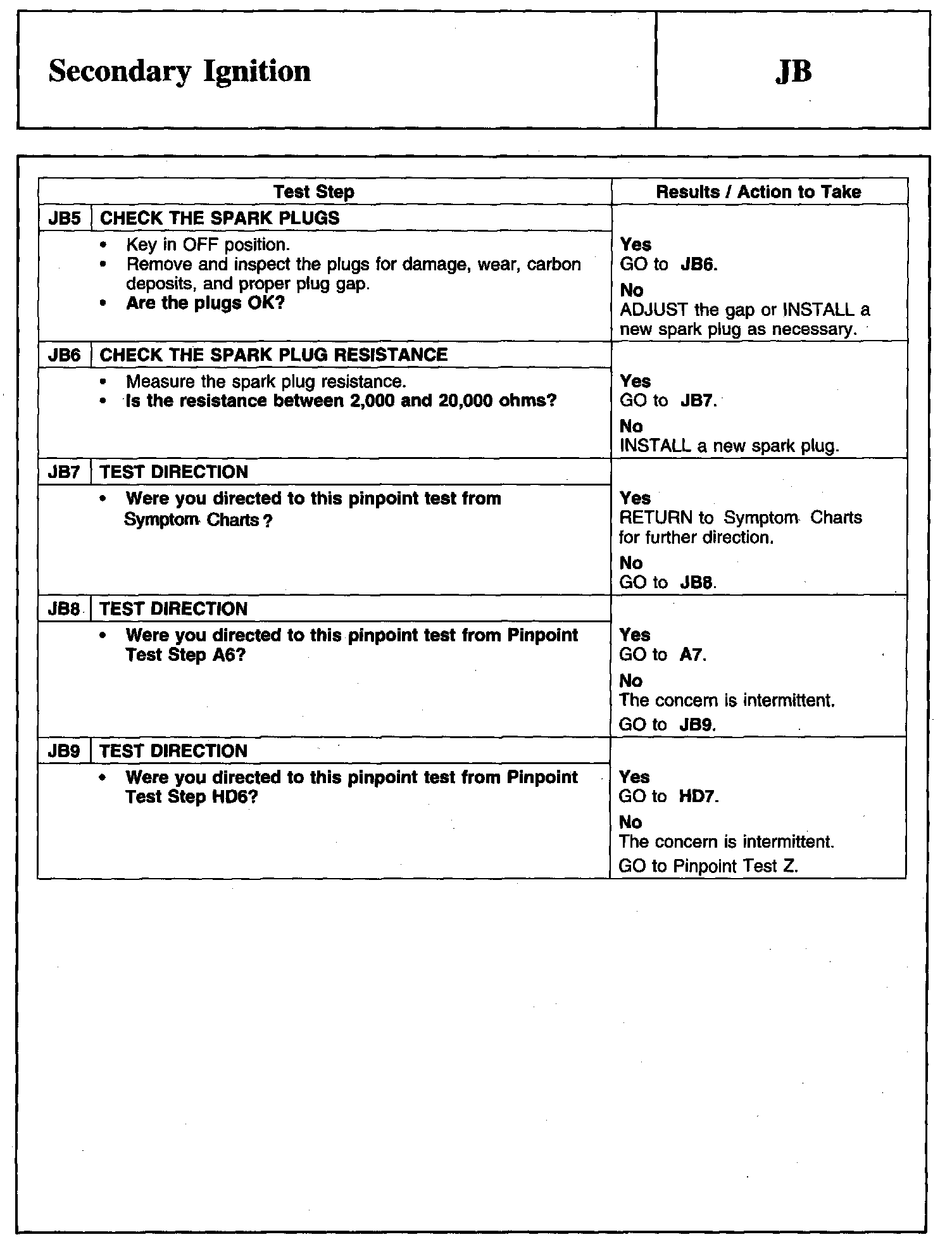 PINPOINT TEST JB: SECONDARY IGNITION