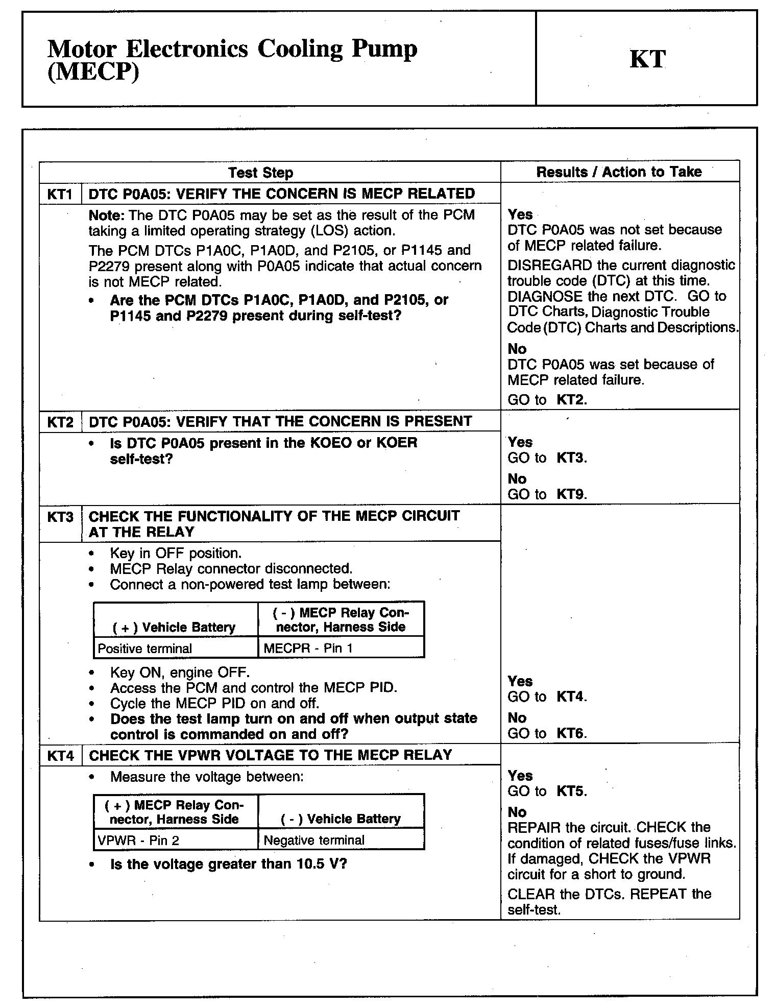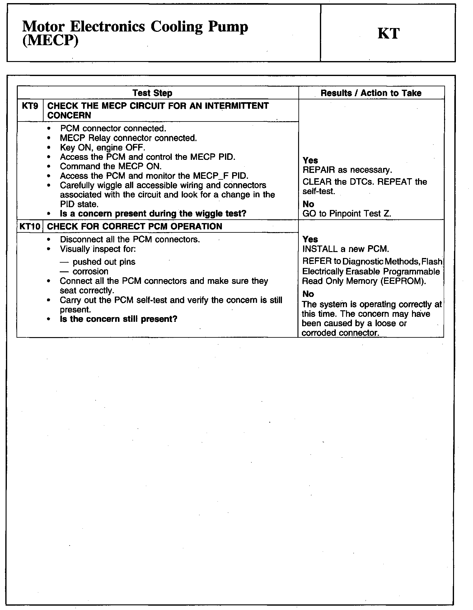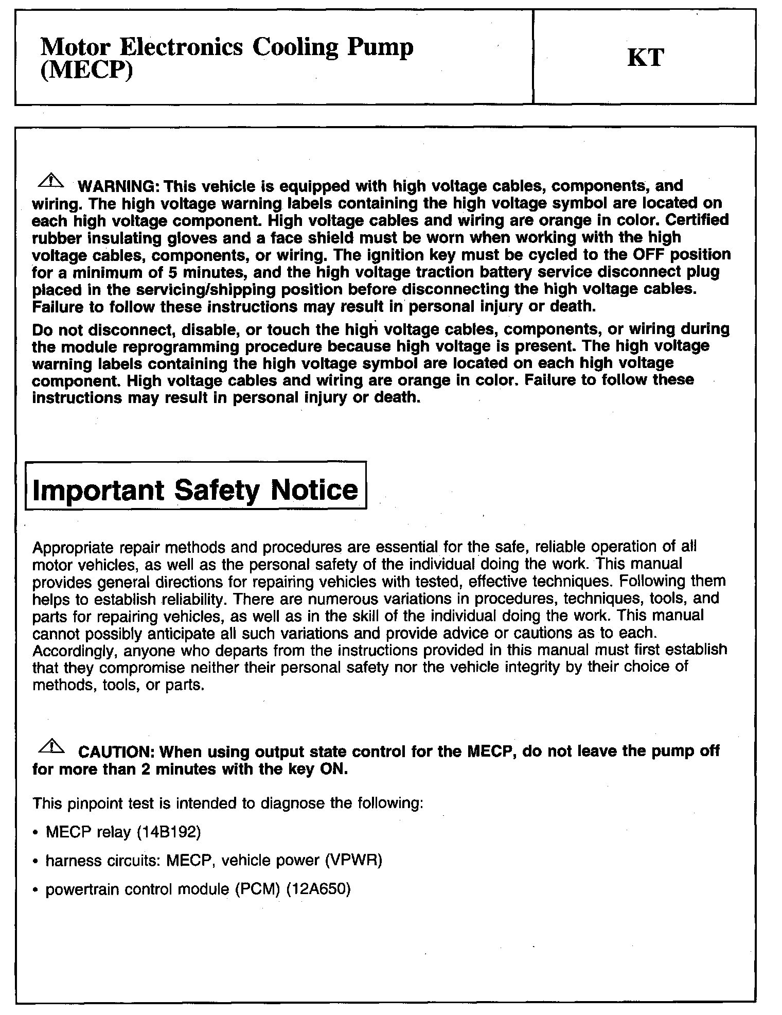 PINPOINT TEST KT: MOTOR ELECTRONICS COOLING PUMP (MECP)Warning And Important Safety Notice: