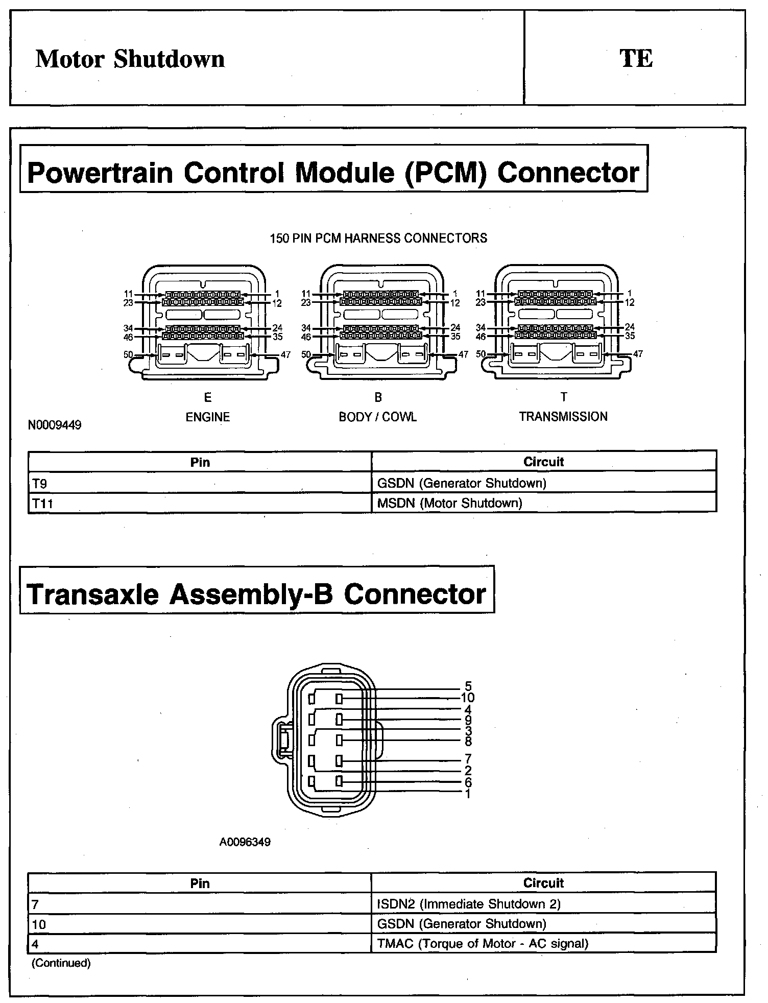 Powertrain Control Module (PCM) Connector And Transaxle Assembly-B Connector: