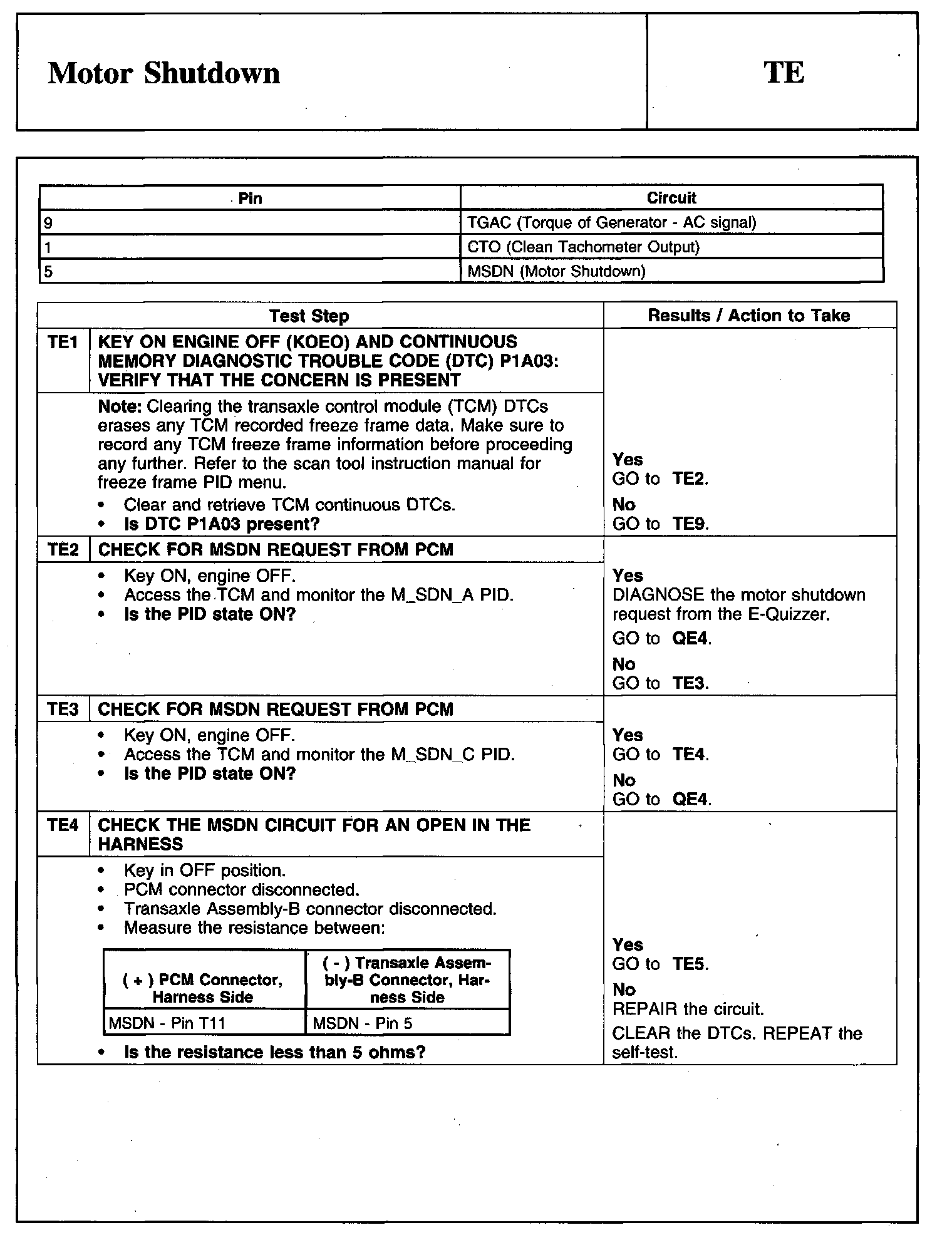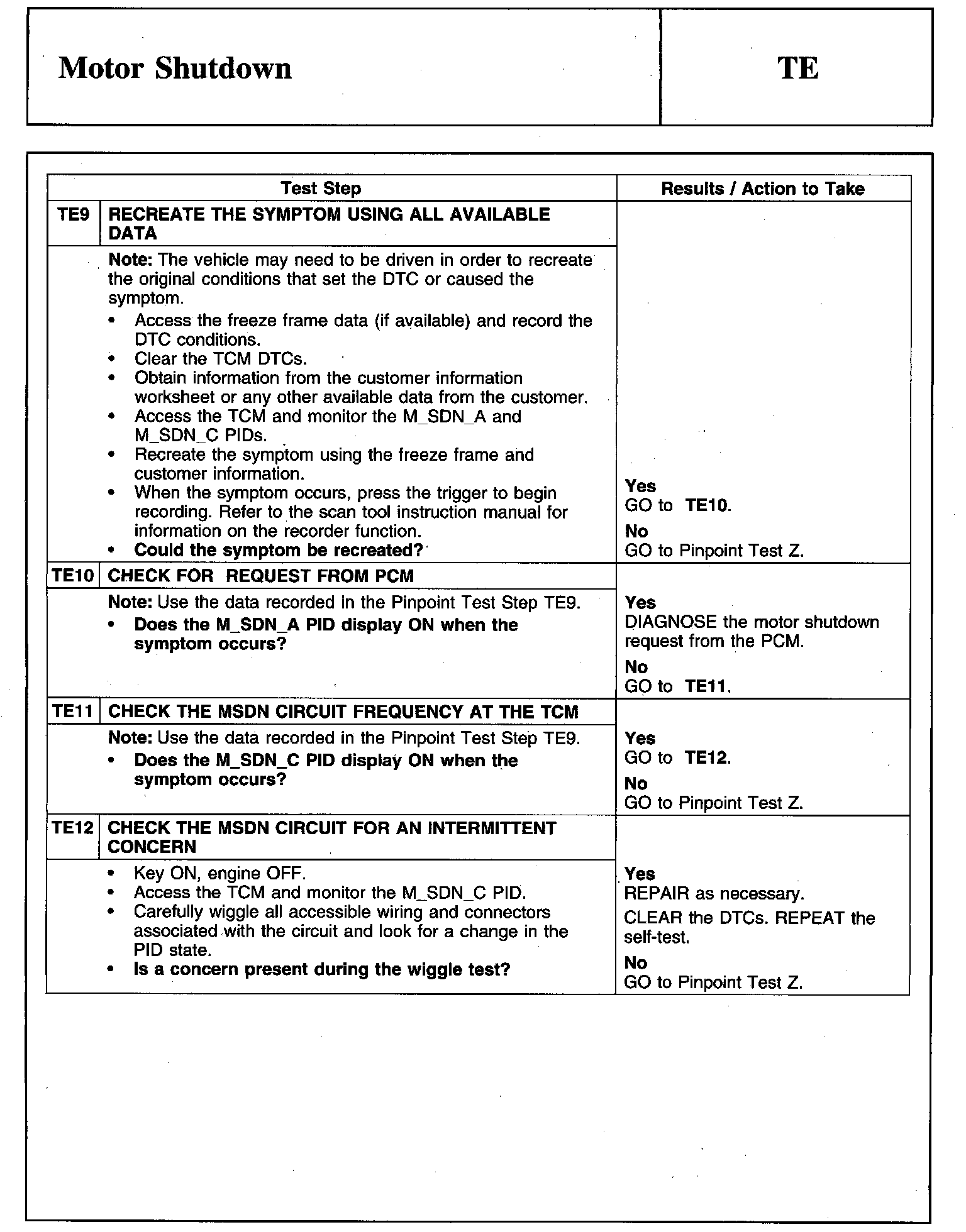 PINPOINT TEST TE: MOTOR SHUTDOWN