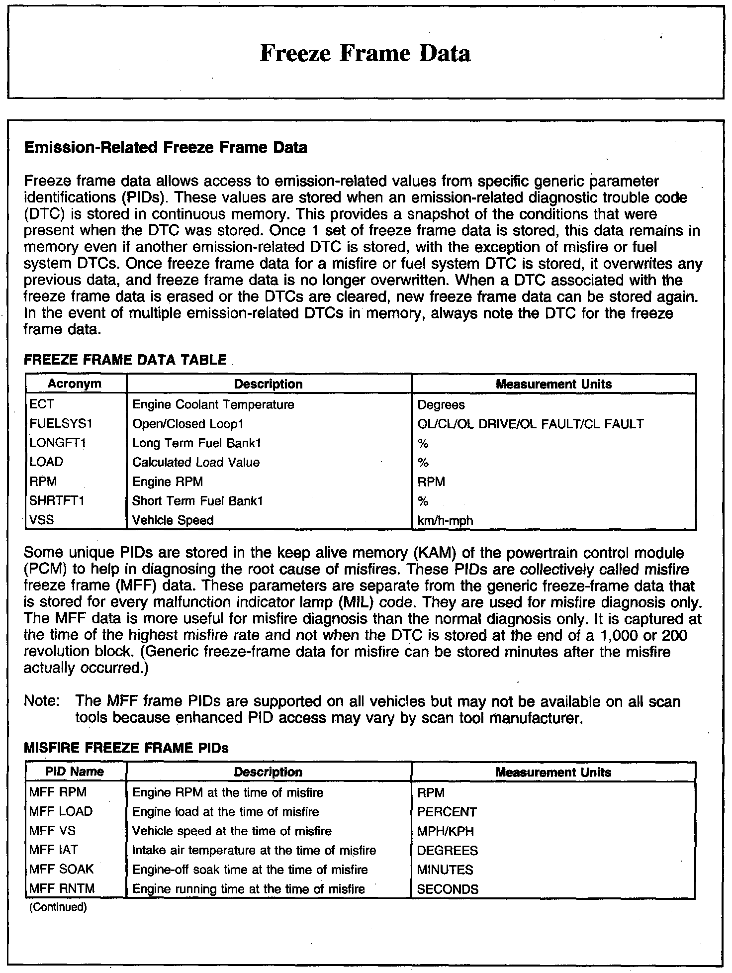 Freeze Frame Data