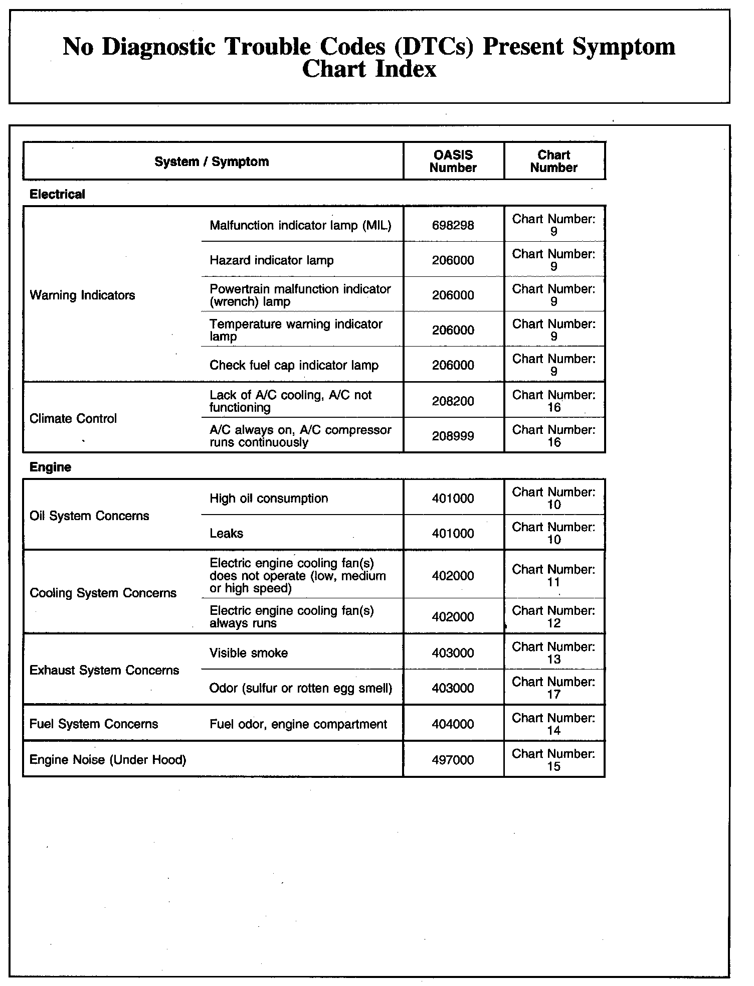 No Diagnostic Trouble Codes (DTCs) Present Symptom Chart Index