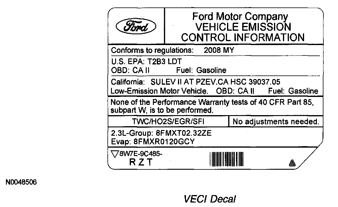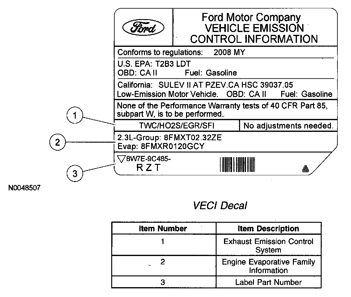 VEHICLE EMISSION CONTROL INFORMATION (VECI)VECI Decal