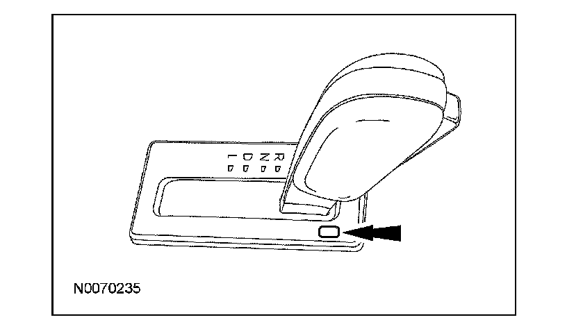 3. Using a suitable tool, depress the brake shift interlock override mechanism on the selector lever, apply the brake, depress the button on the selector lever and move the selector lever into NEUTRAL.