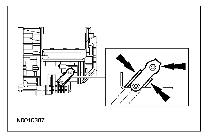 10. To verify the correct adjustment, observe the selector lever on the transaxle, while an assistant shifts the transmission selector lever to each range position, ending in the D position.