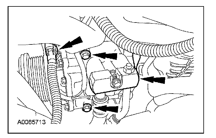 ^ Position the A/C compressor aside and support the compressor with a length of mechanic's wire.