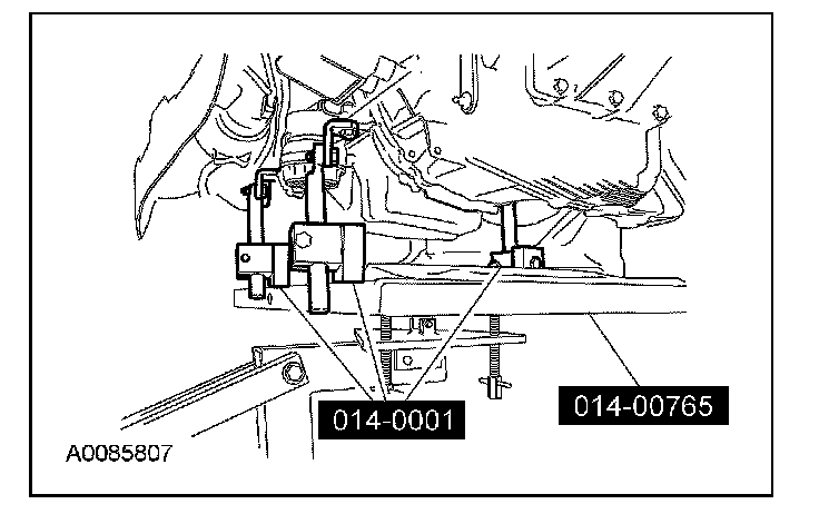62. Using the special tools, secure the engine to the lift table.