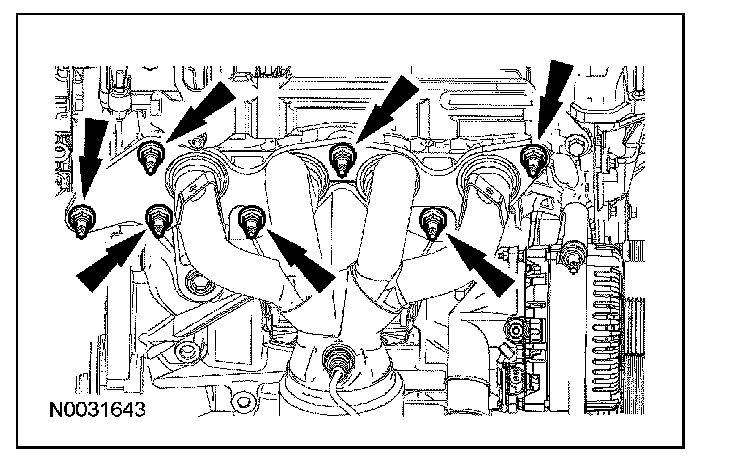 74. Remove and discard the 7 exhaust manifold nuts.
