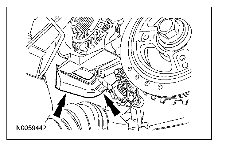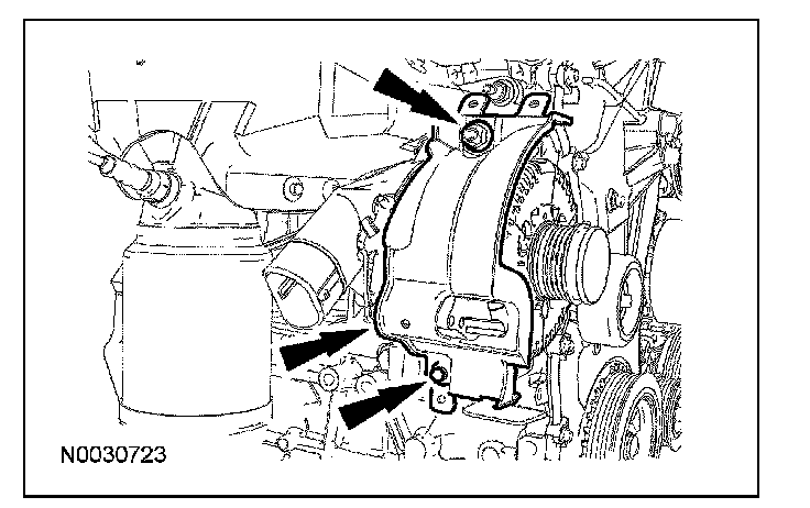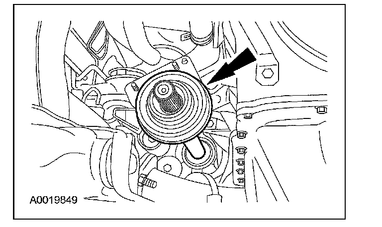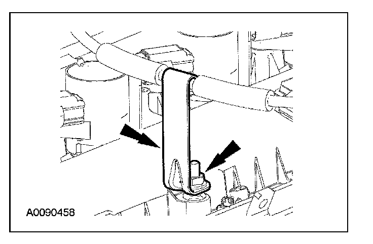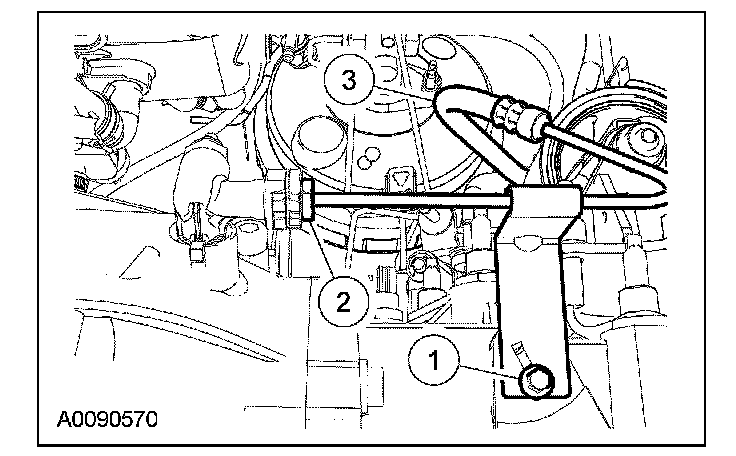 ^ Position the A/C compressor aside and support the compressor with a length of mechanic's wire.
