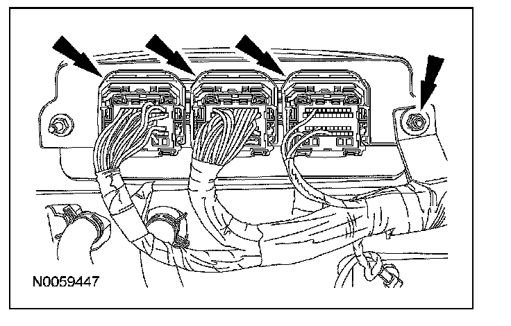 9. Disconnect the heated oxygen sensor (HO2S) and the catalyst monitor sensor electrical connectors.